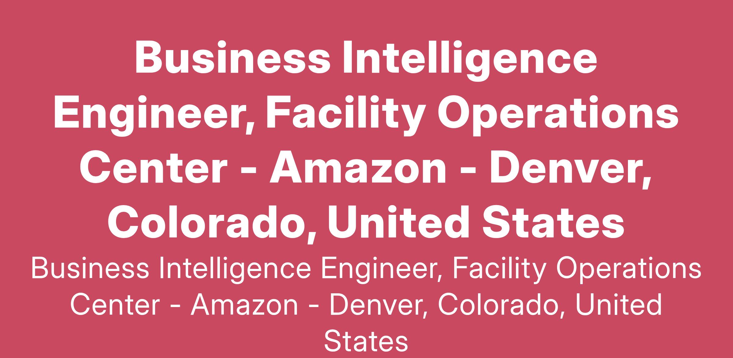 The AWS Facility Operations Center (FOC) team is seeking a Business Intelligence Engineer (BIE) to serve as a technical resource and leader to drive the team’s long-term vision within the Data Center Community (DCC).