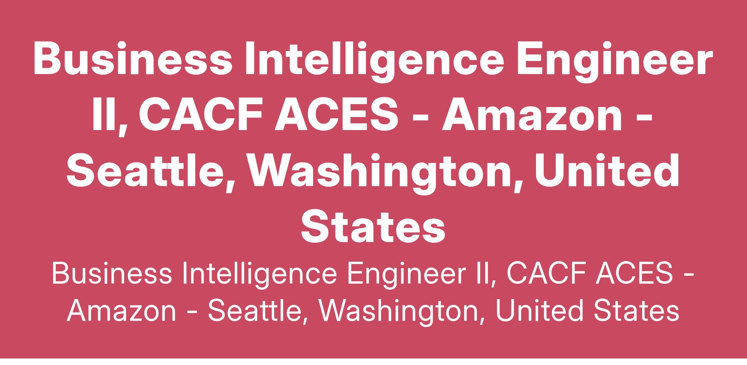 Are you interested in building analytical solutions for CACF ACES? This position is for a Business Intelligence Engineer (BIE) to scale up our data projects to next level. This position requires experience in business intelligence solutions, hands-on on data engineering and data science practices, the ability to collaborate with various teams, and excellent statistical and analytical abilities.