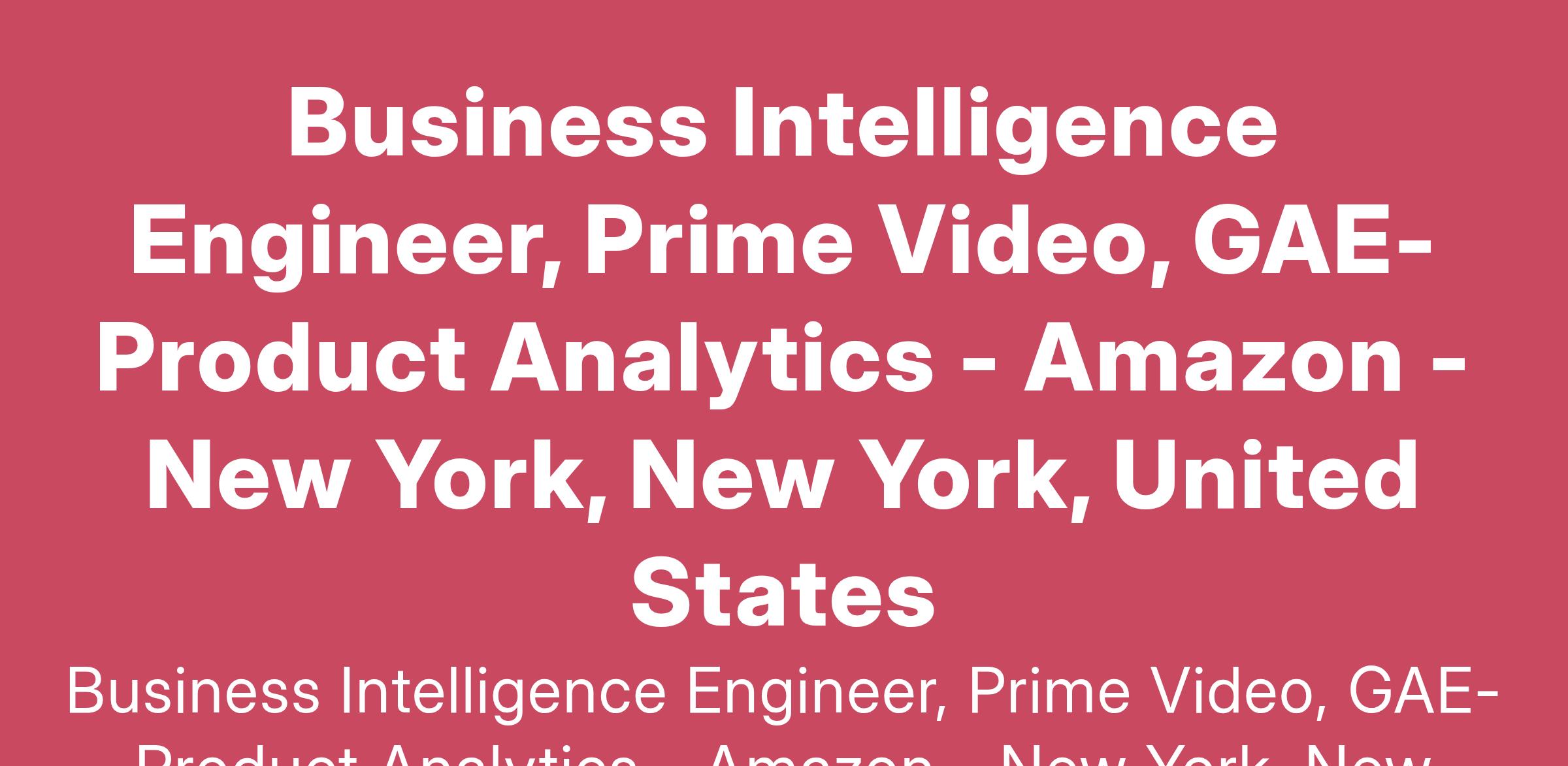 Prime Video is changing the way customers around the world consume video entertainment by offering – in every country – the broadest selection of premium video within a single experience, accessible across all devices. The mission of Prime Video International Expansion Business Intelligence team is to drive marketing, product and content decisions that improve customer experience by providing analytical solutions and actionable insights. To help us fulfill this mission, we are seeking a competent, curious, resourceful, and experienced Business Intelligence Engineer to support our product and tech branch to develop new insights into product and internal tools and improve both external and internal customer experience.