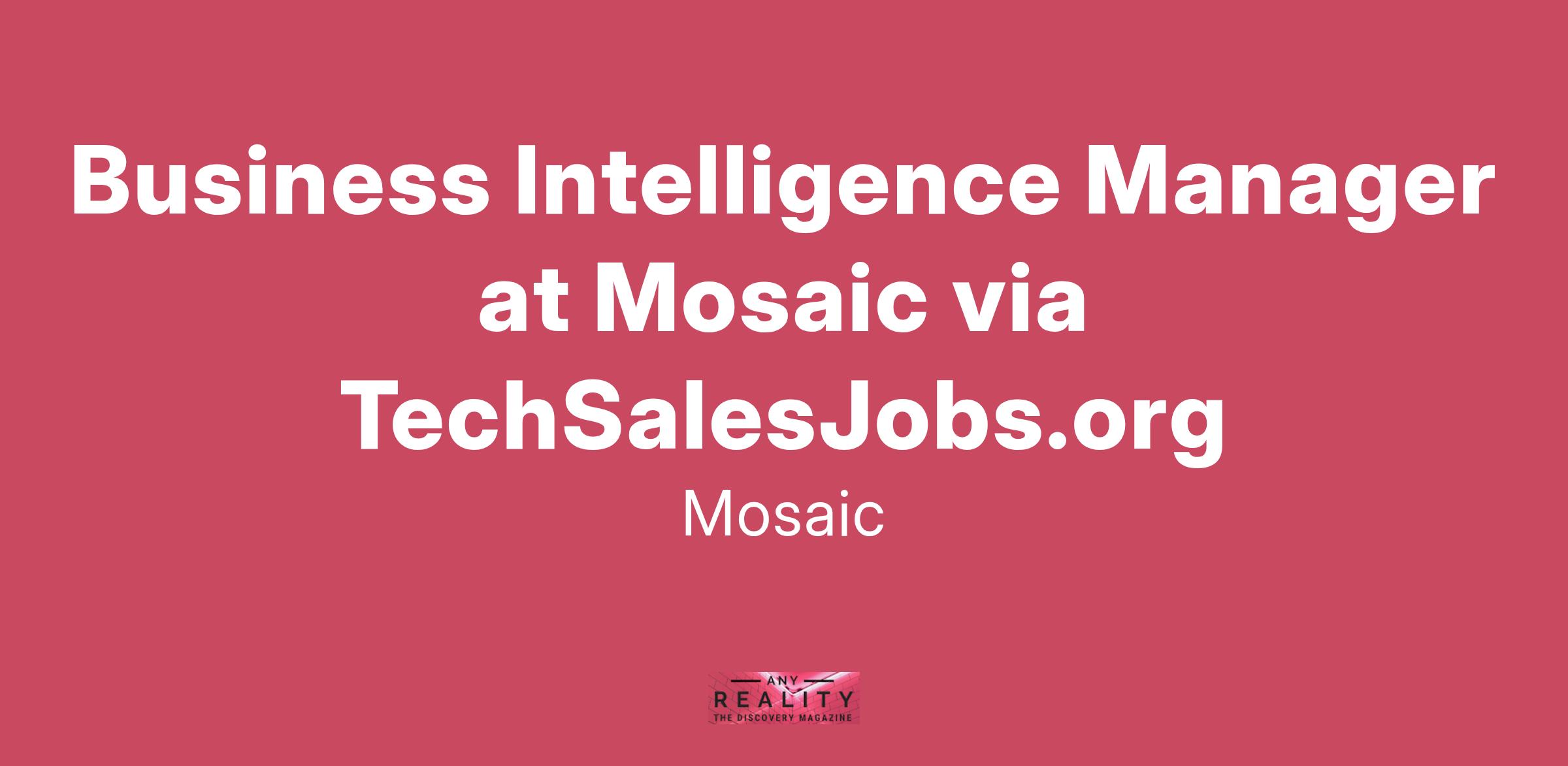 Business Intelligence Manager at Mosaic via TechSalesJobs.org