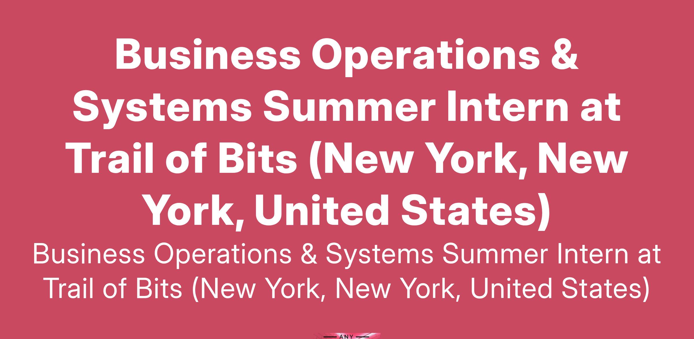 Business Operations & Systems Summer Intern at Trail of Bits (New York, New York, United States)