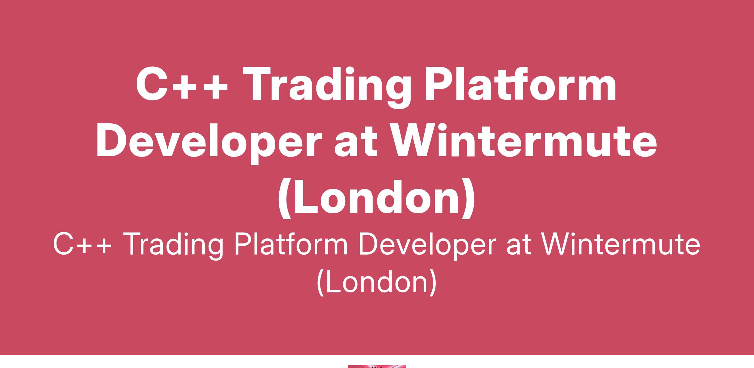 C++ Trading Platform Developer at Wintermute (London)