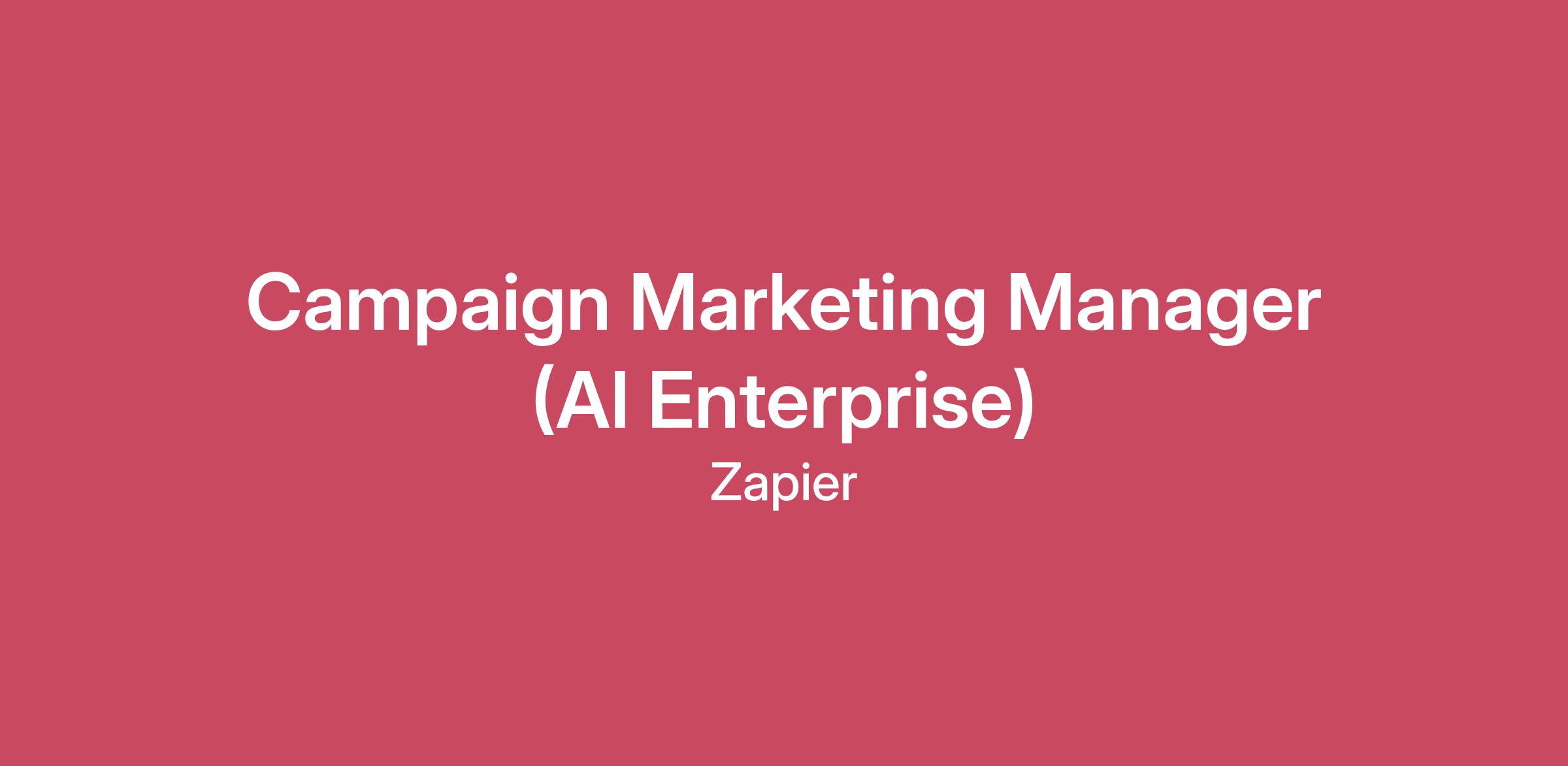 AI at ZapierAt Zapier, we build and use automation every day to make work more efficient, creative, and human. So if you’re using AI tools while applying here - that’s great! We just ask that you use them responsibly and transparently.Check out our guidance on How to Collaborate with AI During Zapier’s Hiring Process, including how to use AI tools like ChatGPT, Claude, Gemini, or others during our hiring process - and when not to.Job Posted: January 16, 2026About Zapier:We’re humans who simply think computers should do more work. At Zapier, we’re not just making software, we’re building a platform to help millions of businesses globally scale with automation and AI. Our mission is to make automation work for everyone by delivering products that delight our customers. You’ll collaborate with brilliant people, use the latest tools, and leverage the flexibility of remote work. Your work will directly fuel our customers’ success, and as they grow, so will you.Job DescriptionZapier is hiring a Campaign Marketing Manager to lead scaled outbound powered by product engagement signals and usage data. This role owns how thousands of product data points are turned into prioritized, timely outreach that reaches the right customers when it actually makes sense.You decide who to reach out to and when outreach is earned. You care about the craft of outbound and the people on the other side of it. You love the moment when product insight, timing, and creativity line up and an email is actually worth sending.About You5+ years of B2B marketing experience, with deep focus on Enterprise outbound programsProven success writing high-performing sales emails at scaleYou’ve run integrated, complex campaigns across digital, events, partner channels, and you know how to measure impact.Strong understanding of enterprise buying behavior in AI, automation, or transformationComfortable testing, iterating, and scaling programs across large audiencesAI-forward mindset with hands-on experience using AI to improve speed, quality, or relevanceHands-on experience with HubSpot, Gong Engage, and modern outbound engagement platforms.What You’ll DoLead campaign planning: Use product usage and intent signals to define outbound priority, timing, and audience selectionWrite and refine sales-ready outbound messaging aligned to enterprise AI use casesPartner with Product Marketing to translate positioning into outbound-ready narrativesWork with RevOps to define targeting, routing, attribution, and performance benchmarksEnable Sales with sequences, messaging frameworks, and activation guidanceMeasure impact across reply rate, meeting booked rate, pipeline sourced, and conversionContinuously test subject lines, messaging angles, personalization, and formats to improve efficiencyApplication Deadline:The anticipated application window is 30 days from the date job is posted, unless the number of applicants requires it to close sooner or later, or if the position is filled.Even though we’re an all-remote company, we still need to be thoughtful about where we have Zapiens working. Check out this resource for a list of countries where we currently cannot have Zapiens permanently working.