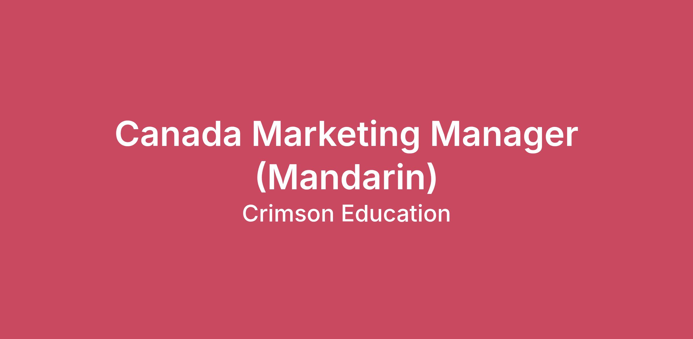 Crimson Education is the world’s leading college admissions consulting firm, with over 1,490 Ivy League offers and 2,410 to the US Top 15. We help ambitious students gain admission to the world’s top universities through expert-led guidance and proven, data-driven strategies. Crimson students are 7x more likely to get into the Ivy League than their peers. We were recently featured on the front page of the Wall Street Journal.Crimson is the only college admissions consultancy that brings together:Former Ivy League and Top 20 admissions officers to rigorously review and refine applicationsProfessors and PhD teaching fellows from leading universities to guide students through original, independent research — with pathways to selective peer-reviewed publication or conference presentationPast ISEF winners and judges who coach students to compete for state, national, and international science fair awardsCapstone project mentors who help students design and scale leadership initiatives with real-world impact, measurable outcomes, and credible external validationWe’re backed by leading VC firms, including Tiger Global, Heal Partners, IceHouse Ventures, and Movac, and recently closed a USD $40M Series D funding round at a USD $640M valuation. We now operate across 21 markets worldwide, including the US, Canada, UK, Singapore, Japan, Hong Kong, Australia, and New Zealand.The RoleCrimson Education Canada is seeking a highly organized, detail-oriented, and energetic Marketing Manager to lead the strategy, planning, and execution of marketing initiatives. In this role, you will be responsible for increasing brand awareness, driving lead generation, and supporting sales through targeted, regionally relevant marketing campaigns, events, and partnerships.Working closely with the Canada Country Manager and the Canadian sales team — and alongside fellow marketing team members from Crimson USA — you will lead and execute a wide range of revenue-generating initiatives—from digital campaigns and webinars to live school events, parent seminars, and large-scale education expos. This role requires a deep understanding of the Canadian market, domestic travel, and a passion for creating compelling and effective marketing experiences. You will also be a visible representative of the brand in Canada, leading presentations and engaging directly with potential partners.What are the main responsibilities for this role?Strategize and manage end-to-end marketing campaigns to increase lead volume and drive consultation bookings with prospective parent clientsBuild and manage a marketing calendar tailored to Canadian families and aligned with Crimson’s global strategyDevelop and manage digital and content marketing initiatives, including blogs, ebooks, ads, webinars, case studies, and email campaignsPlan and execute live and virtual events across Canada—including school presentations, education expos, and Crimson-hosted parent eventsRepresent Crimson in webinars and at live events, presenting confidently and engagingly to parents and studentsIdentify and build relationships with potential partners such as schools, parent groups, academic organizations, and media outletsLead the execution of a Canada-specific social media strategy across platforms like WeChat, Facebook, Instagram, LinkedIn, etcMonitor performance of all marketing activities and adjust tactics based on lead and conversion metricsTravel for events, conferences, and partnership meetings (estimated 20% of the role)What skills and experience are required?Minimum 5 years of experience in marketing and campaign managementA highly organized individual who thrives on managing multiple projects with attention to detailConfident public speaker and presenter—comfortable leading webinars, hosting events, and representing the brandCollaborative with strong interpersonal skills, including experience in negotiating partnershipsExperience with social media marketing and familiarity with platforms like WeChat, Meta, LinkedIn, Little Red Book etcWorking knowledge of tools such as Salesforce, Marketo, Google Analytics, Storyblok, or similar is a plusStrong writing and design skillsBachelor’s degree or higher, ideally in marketing, communications, or a related fieldWhy work for Crimson?Rapidly growing start up, with a flexible working environment where you will be empowered to structure how you workLimitless development and exposure - our internal promotions/role changes made up 33% of all recruitment last year$1000 individual training budget per year, we love to ‘Level Up’ (it’s one of our core values)!Psychologist on staffInsightful fireside chats and workshops to help support our high-performing and ambitious teamRadical Candor is a feedback approach we live byWe’re a global player with 28 markets (and growing) across the globe. Most roles have the option to work from one of our many offices or remotely!If you're passionate about growing in a fast-paced, collaborative environment and want to work with cutting-edge technology, then we'd love to hear from you!Please keep an eye on your spam/junk email folder for correspondence from Team Tailor.