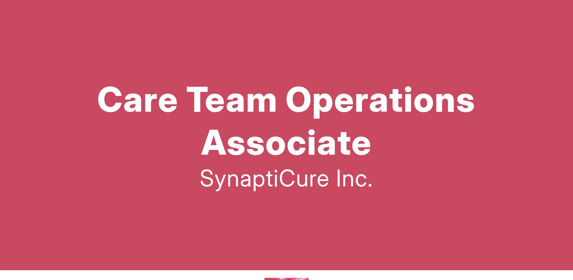 The Care Team Operations Associate (CTOA) plays a crucial role in supporting Synapticureâs neurodegenerative community by managing various administrative support functions, ensuring patients and caregivers receive the assistance and coordination they need. As a representative of Synapticure, you will engage with patients, caregivers, medical offices, and external healthcare organizations, helping to optimize care pathways. This role requires adaptability, strong communication skills, and a dedication to delivering compassionate, high-quality service to enhance patient satisfaction and outcomes.