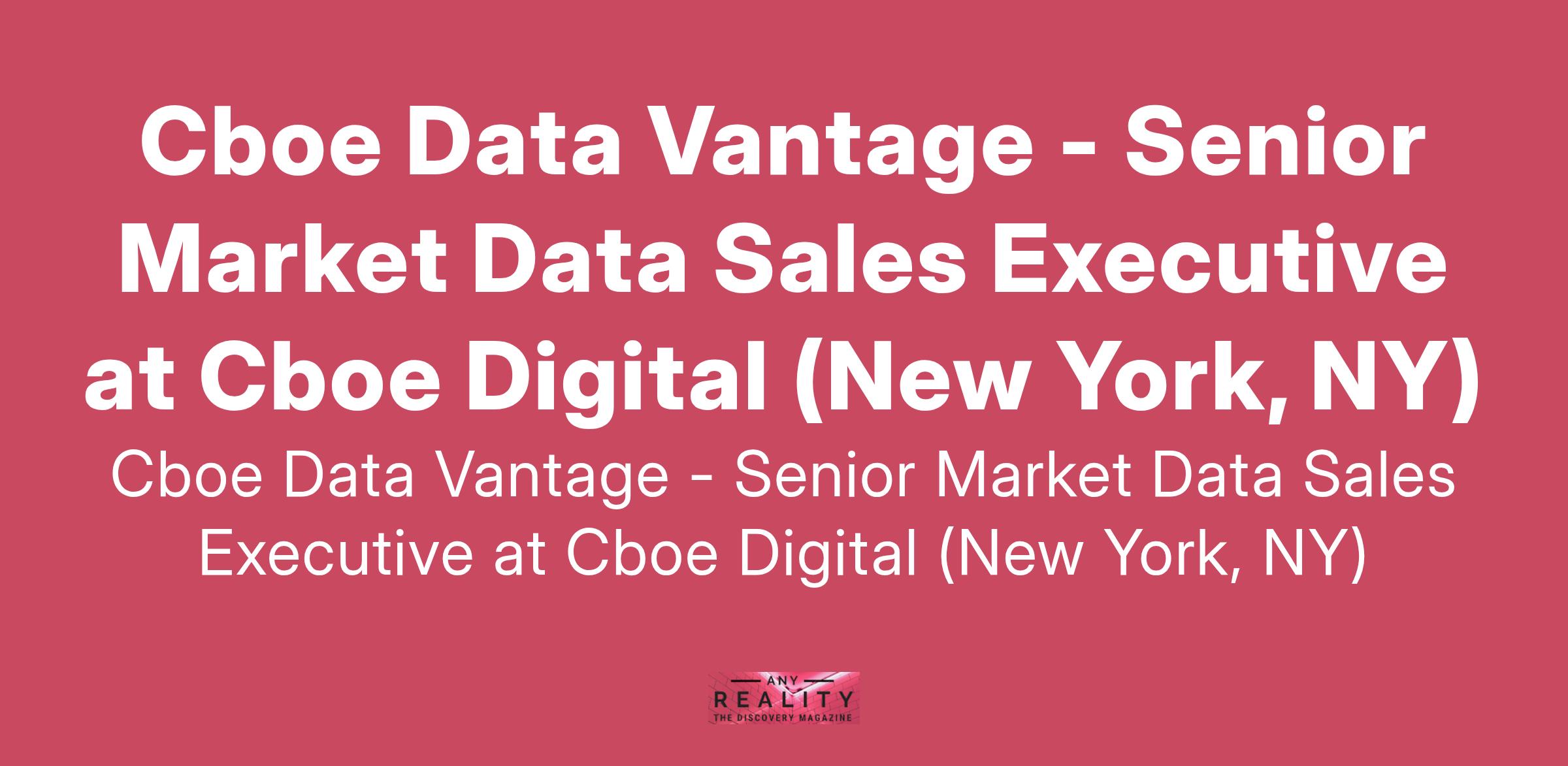 Cboe Data Vantage - Senior Market Data Sales Executive at Cboe Digital (New York, NY)