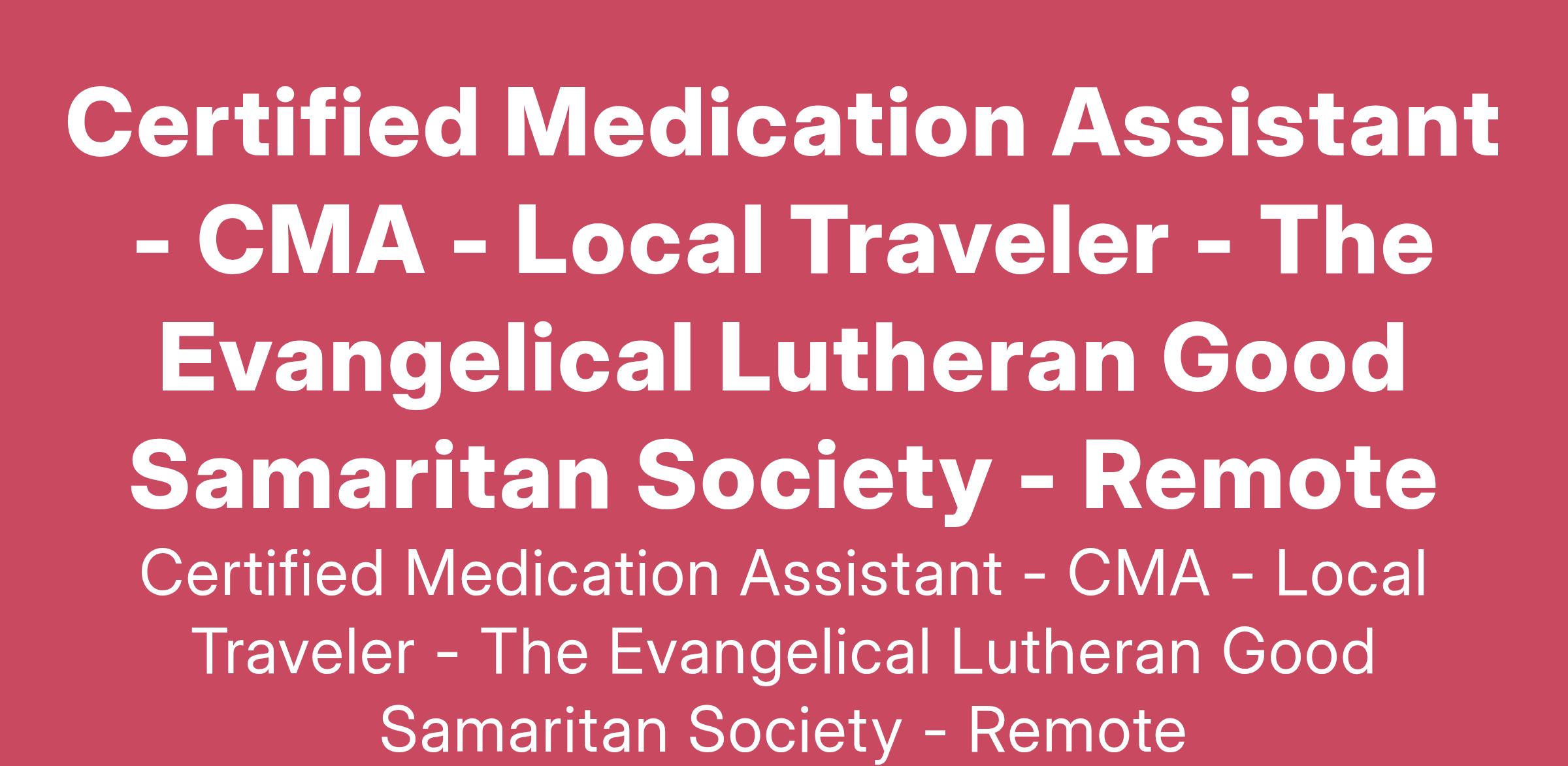 For all Good Samaritan Society Locations: Must have the state required certified/trained medication aide certification (CMA or TMA). It is assumed that one must have their certified nursing assistant (CNA) certification prior to attaining their TMA/CMA.