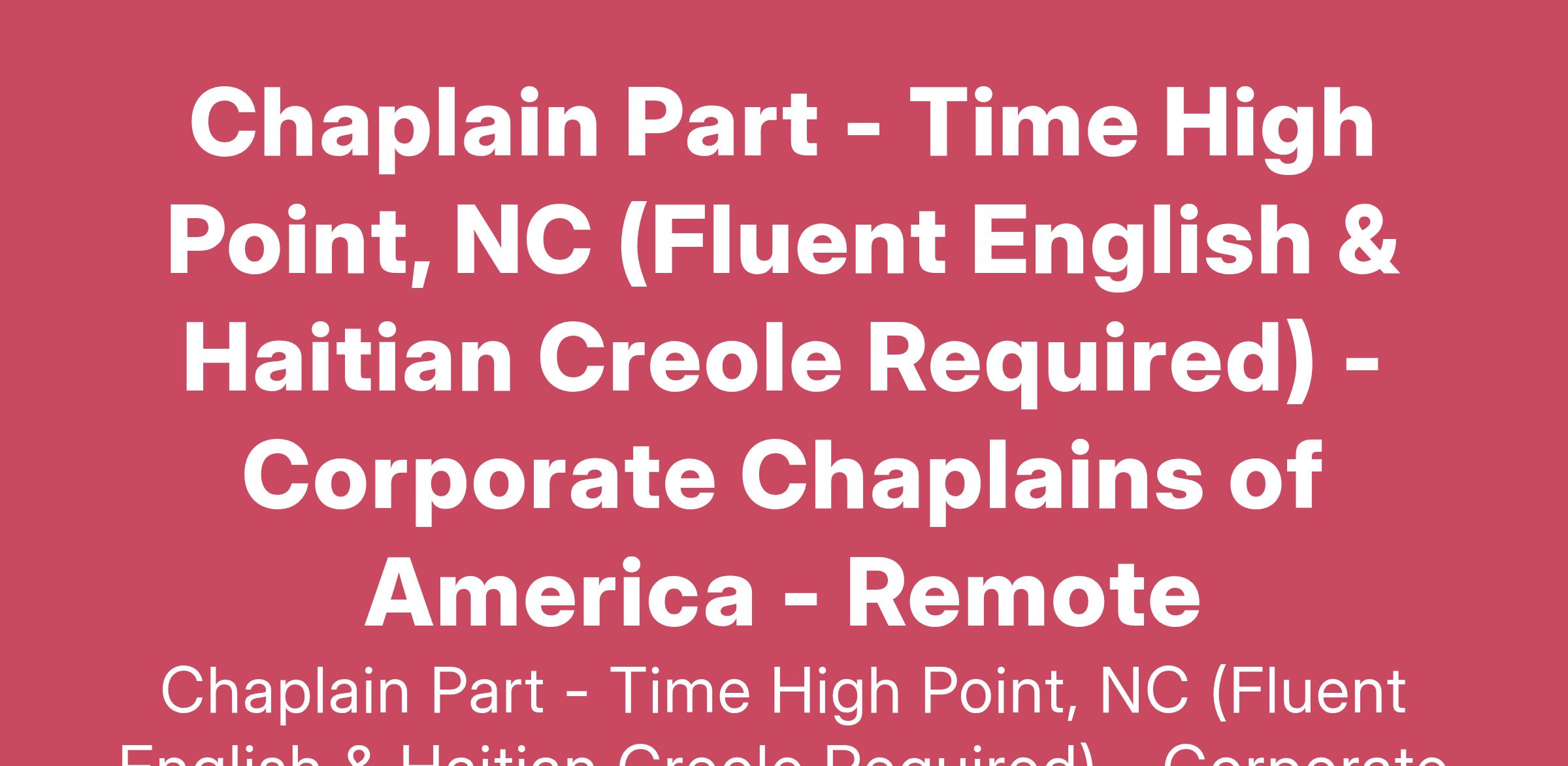 Title: Chaplain Part-Time (Fluent English & Haitian Creole Required)