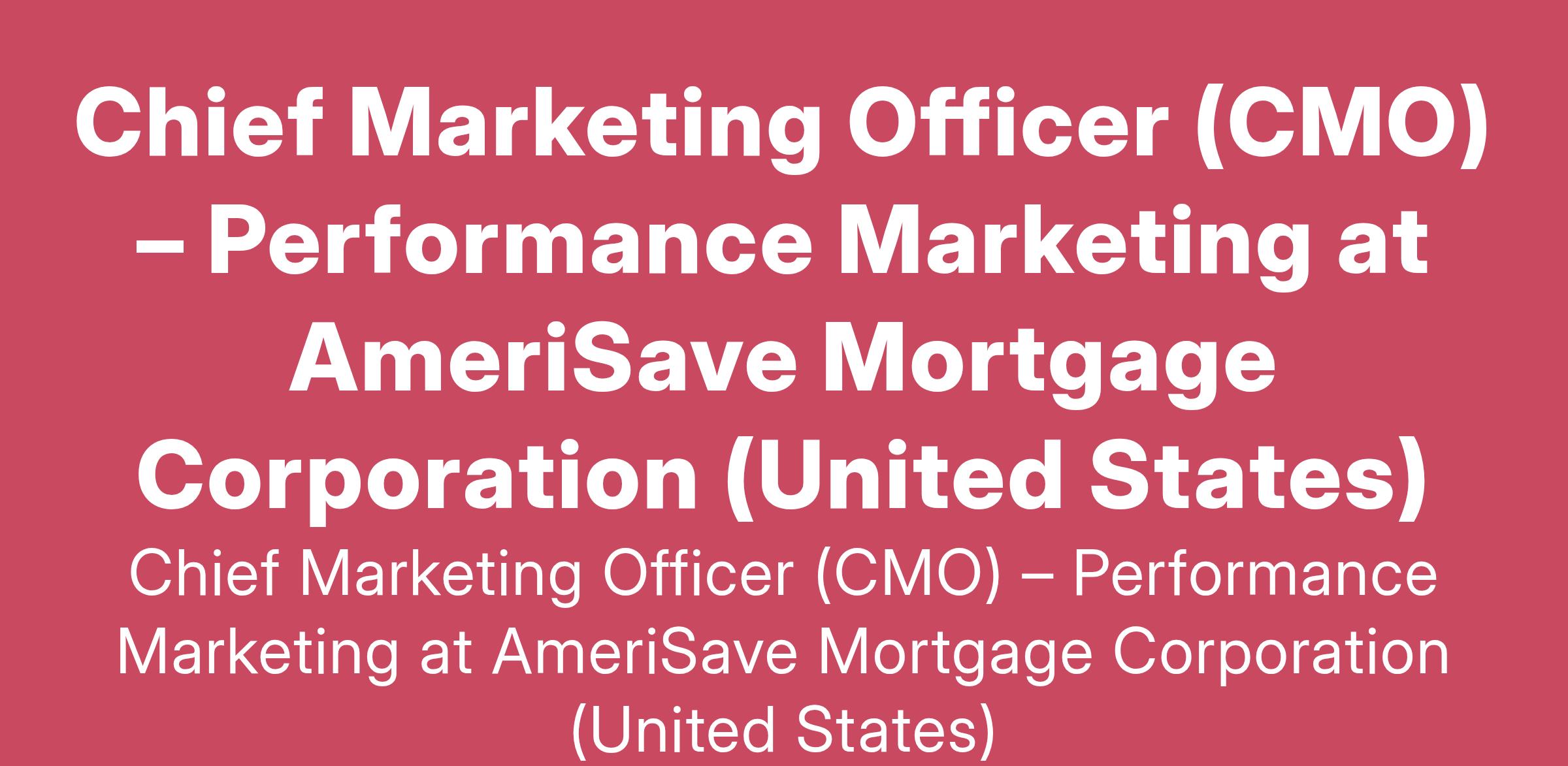 Chief Marketing Officer (CMO) – Performance Marketing at AmeriSave Mortgage Corporation (United States)