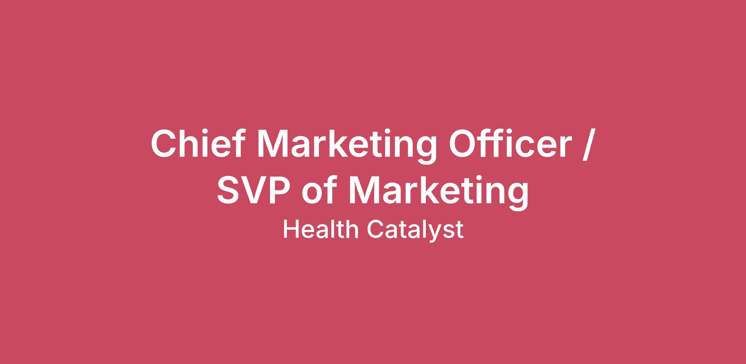 Join one of the nation’s leading and most impactful health care performance improvement companies. Over the years, Health Catalyst has achieved and documented clinical, operational, and financial improvements for many of the nation’s leading healthcare organizations. We are also increasingly serving international markets. Our mission is to be the catalyst for massive, measurable, data-informed healthcare improvement through:Data: integrate data in a flexible, open & scalable platform to power healthcare’s digital transformationAnalytics: deliver analytic applications & services that generate insight on how to measurably improveExpertise: provide clinical, financial & operational experts who enable & accelerate improvementEngagement: attract, develop and retain world-class team members by being a best place to workJob Title: CMO/SVP, MarketingDepartment: MarketingLocation: Salt Lake City, UT or RemoteTravel: Approximately 10-30%, US**This position is currently not eligible for visa sponsorship**Job SummaryThe Head of Marketing role is designed for a high‑energy and mission‑driven leader who has demonstrated strong performance and is ready for expanded responsibility. This leader will shape the company’s market narrative, technology positioning, product marketing, demand strategy, and event presence in close partnership with growth and the product organizations. The role requires a data‑driven marketer who can translate product capabilities into clear buyer value, generate qualified funnel growth, and guide cost‑effective marketing investments. Success requires strategic thinking, hands‑on execution, and a deep commitment to advancing the next phase of Health Catalyst’s technology‑led growth.Duties & ResponsibilitiesLead the development and rollout of the company narrative, product positioning, PR messaging, and GTM strategy for the healthcare market.Build and execute marketing strategies and campaigns that expand awareness, generate qualified funnel growth, and support customer acquisition and retention in a cost‑effective manner.Oversee product marketing, including segmentation, buyer insights, competitive intelligence, and sales enablement.Lead account based marketing strategies that support adoption, loyalty, referenceability, and expansion.Direct all demand generation programs, including SEM, SEO, ABM, and paid media, with clear ROI, CAC efficiency, and qualified funnel contribution targets.Own the company’s events and trade show strategy, ensuring consistent messaging, strong presence, and measurable and cost‑responsible pipeline impact.Improve messaging, content, and campaign performance through ongoing analysis and insights sharing across the organization.Leverage owned and third‑party channels to broaden reach and strengthen brand authority at efficient cost.Manage and develop a high‑performing marketing team that delivers creativity, operational excellence, and measurable results.Required ExperienceProven ability to shape a clear and compelling narrative that connects product capabilities to buyer needs and industry pain points.Experience bringing new products, features, or major enhancements to market, including positioning, messaging, launch planning, and sales enablement.Demonstrated success partnering with Product and Sales to align messaging, drive adoption, and ensure readiness for market rollout.Strong background in product marketing and demand generation, with the ability to translate market insights into effective campaigns and qualified funnel growth.Track record of using data to guide decisions, measure ROI, and optimize marketing investments.Experience managing or contributing to events and trade shows that drive meaningful awareness and pipeline impact.Ability to lead cross‑functional teams and influence without authority, especially in fast‑moving environments.Demonstrated growth in responsibility and scope, showing readiness for an expanded leadership role.Education & Relevant ExperienceBachelor’s degree in marketing, business, technology, or a related field. Advanced degree helpful but not required.Strong familiarity with Health Catalyst products, customers, and market dynamics.Ten or more years of experience in healthcare or technology with clear growth in responsibility and scope.Proven ability to develop and communicate a clear narrative that connects product capabilities to buyer needs.Demonstrated success bringing new products or major enhancements to market, including positioning, messaging, launch planning, and sales enablement.Experience partnering with Product, Sales, and Growth teams to align messaging, buyer insights, and GTM execution.Hands‑on experience with product marketing and demand generation, including data‑driven decision making and ROI accountability.Experience planning and executing events and trade shows that produce measurable funnel or awareness outcomes.Strong communication and leadership skills with the ability to guide teams and influence cross‑functional partners.Ability to convert data and market insights into actionable marketing strategies.High comfort working with technology concepts and translating them for business and clinical audiences.Deep commitment to the Health Catalyst mission and values.Information Security and Compliance Responsibilities:Maintain compliance with training directives required by the organization pertaining to Information Security, Acceptable Use Policy and HIPAA Privacy and Security.Adhere to and comply with the organizations Acceptable Use Policy.Safeguard information system assets by identifying and reporting potential and actual security events to the organizations Security and Compliance Officers.The above statements describe the general nature and level of work being performed in this job function. They are not intended to be an exhaustive list of all duties, and indeed additional responsibilities may be assigned by Health Catalyst.Studies show that candidat