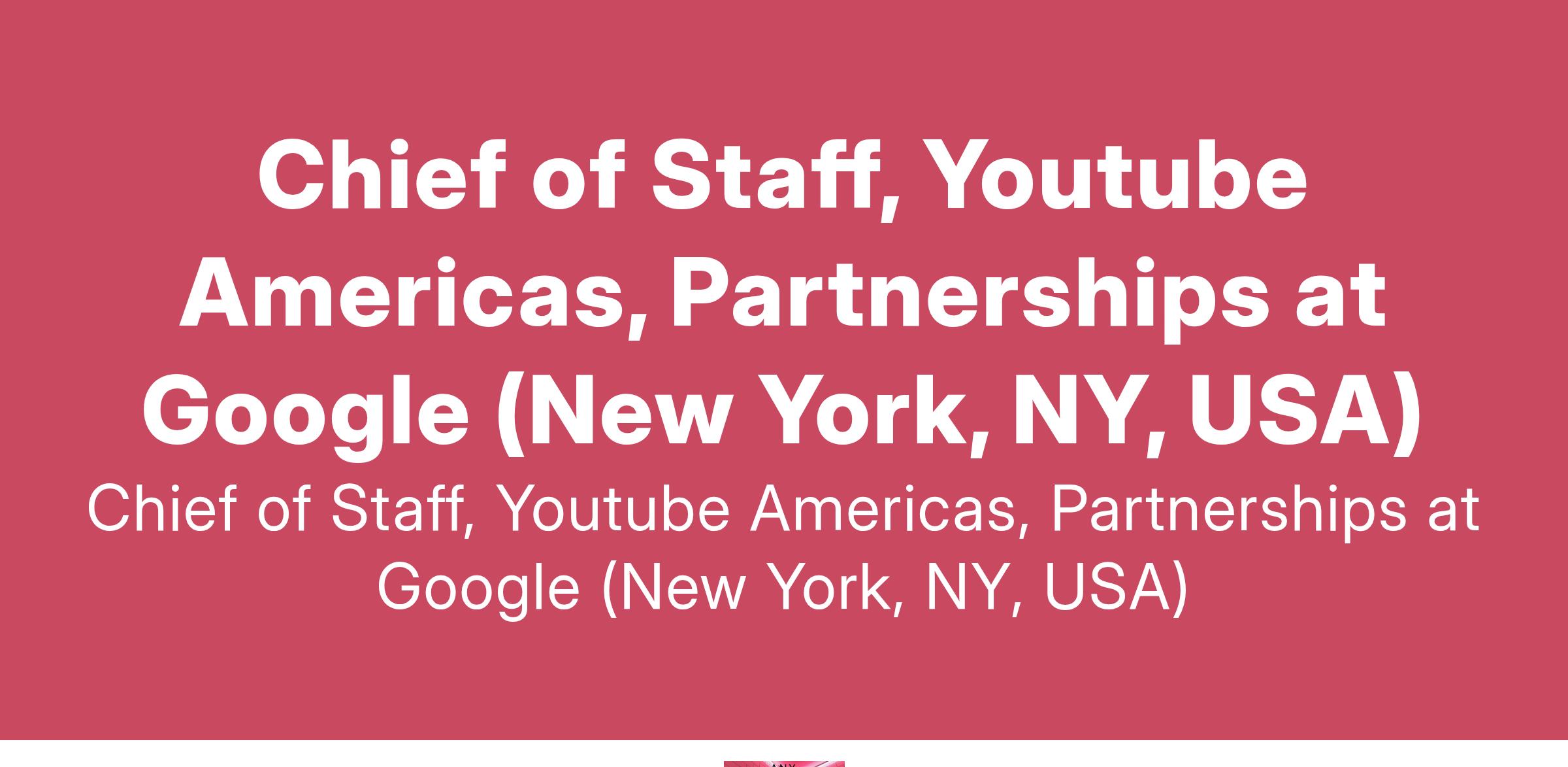 Chief of Staff, Youtube Americas, Partnerships at Google (New York, NY, USA)
