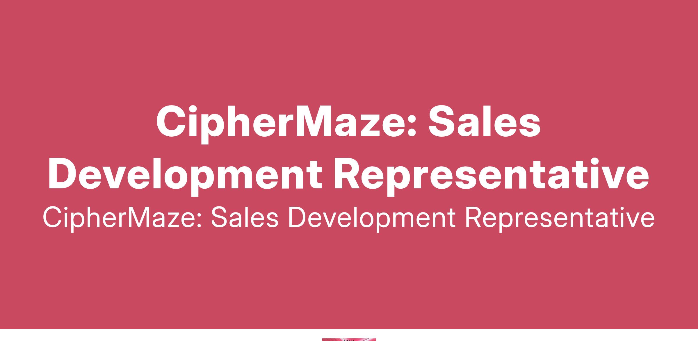 To apply: https://weworkremotely.com/remote-jobs/ciphermaze-sales-development-representative