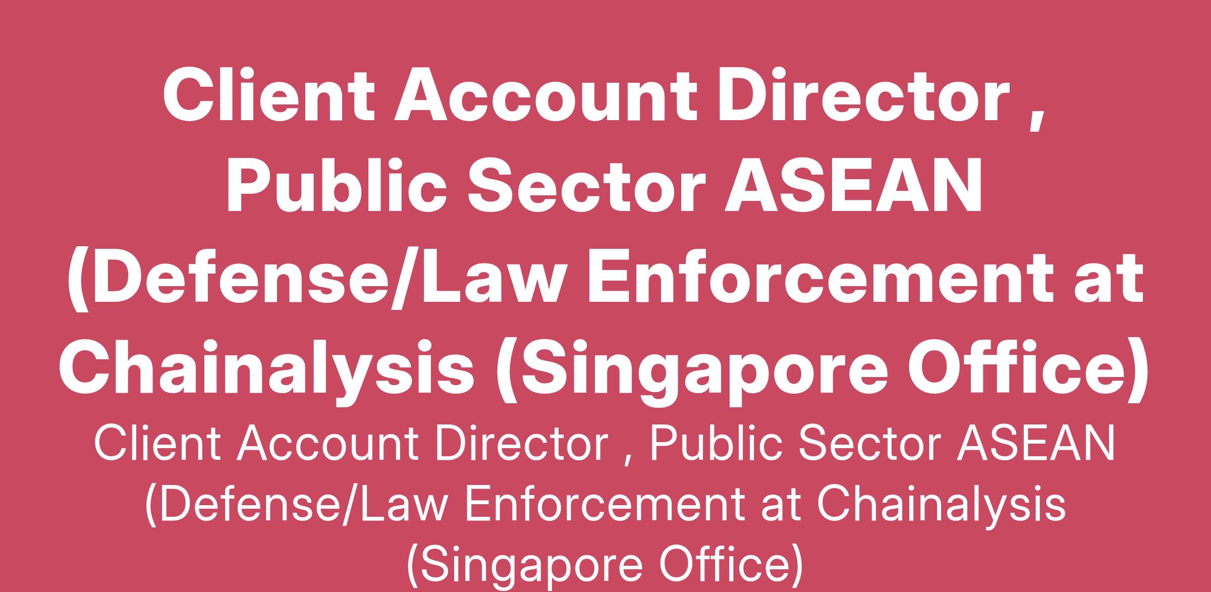 Client Account Director , Public Sector ASEAN (Defense/Law Enforcement at Chainalysis (Singapore Office)