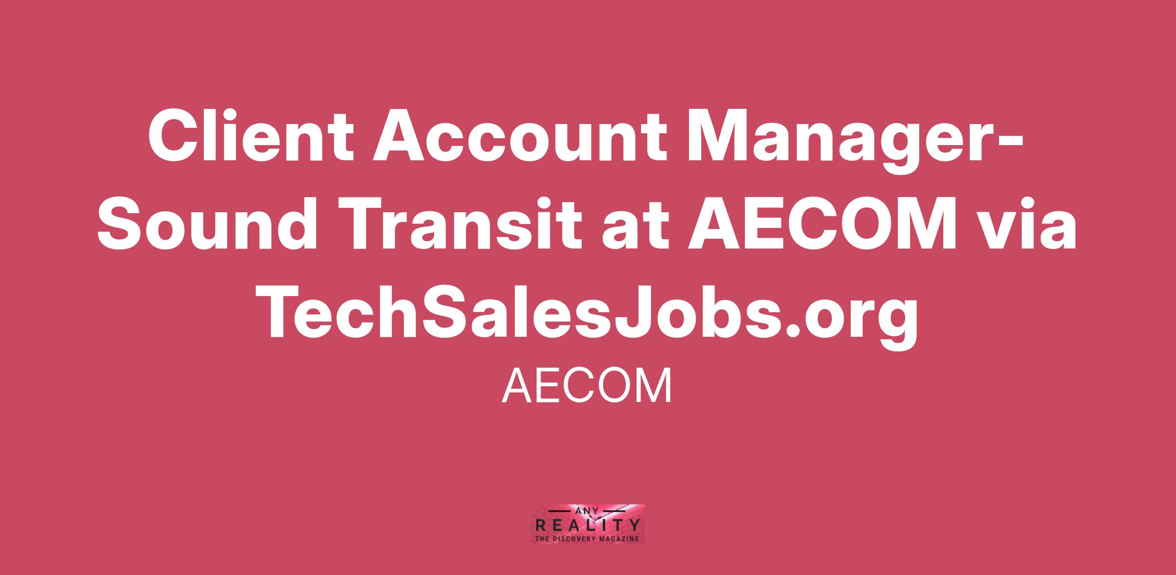 AECOM is seeking a dynamic and experienced Client Account Manager to drive business growth for Sound Transit in Seattle. This external facing leader will represent AECOM with Sound Transit and be responsible for business development, sales, and strategy across all divisions for this key client with a goal of winning new and repeat business for all of AECOM’s service offerings. This position is expected to begin immediately.