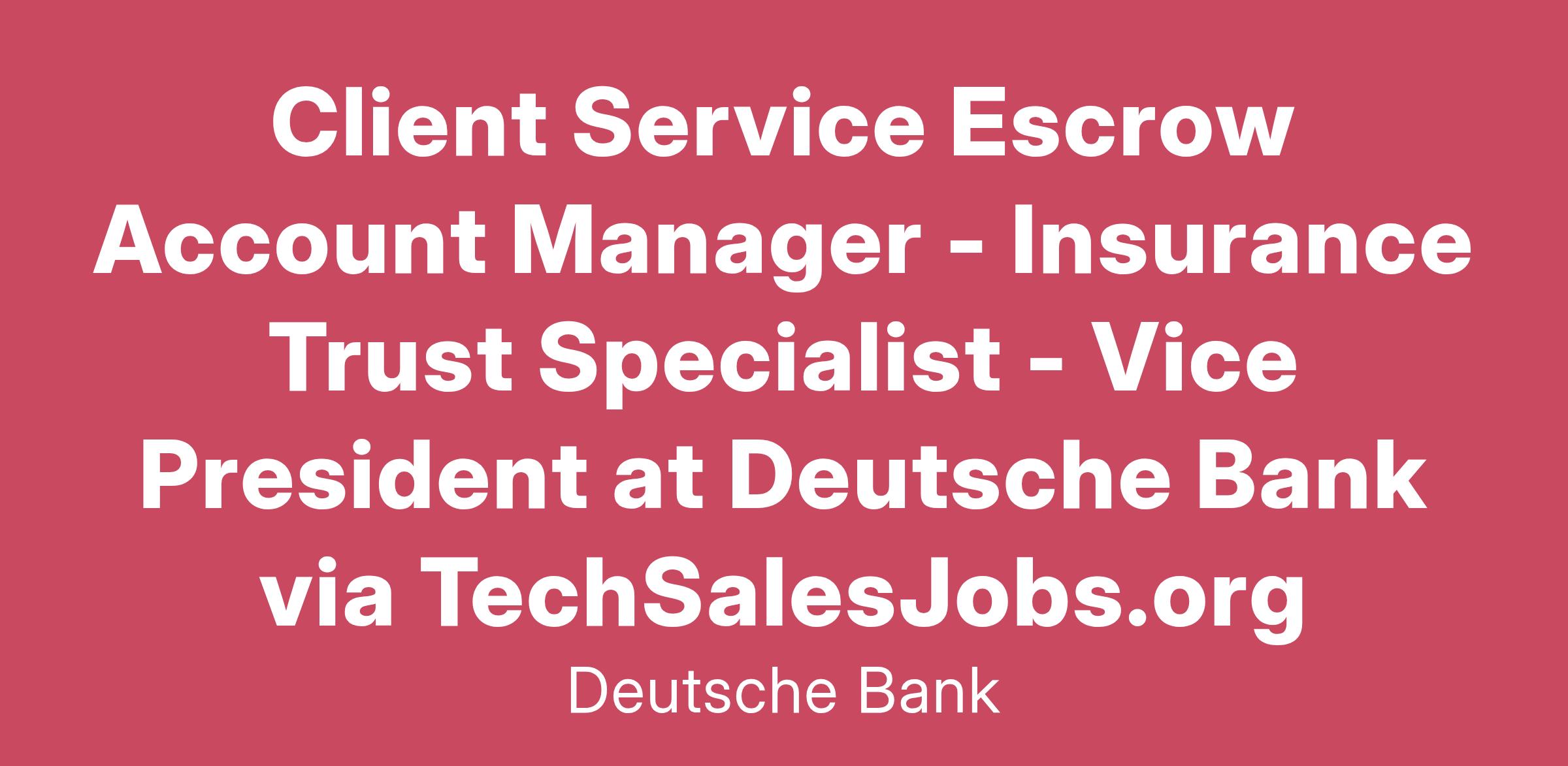 Client Service Escrow Account Manager - Insurance Trust Specialist - Vice President at Deutsche Bank via TechSalesJobs.org