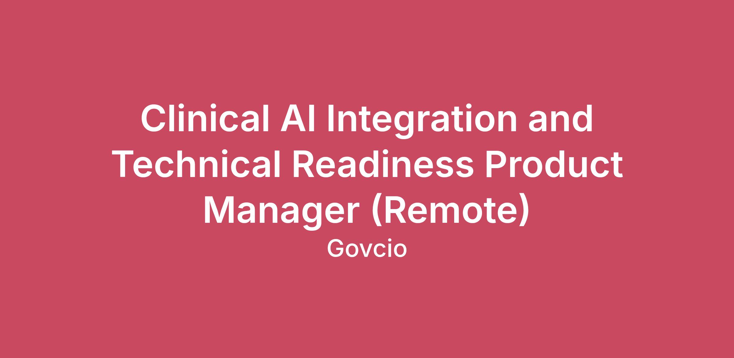 Overview GovCIO is currently hiring for an AI Clinical Integration and AI Technical Readiness Product Manager to oversee the technical readiness, clinical integration validation, and clinical workflow alignment of AI-enabled technologies deployed within VA clinical environments. This role ensures that AI solutions function reliably within CPRS, VistA, and related systems and are technically prepared for training, pilot, and enterprise use. This position focuses on technical product ownership, integration, and readiness, not software development, end-user training, or adoption activities. This is a fully remote position within the United States. Responsibilities AI Product Technical OwnershipServe as the primary technical owner for AI-enabled clinical products from pilot through readiness assessment.Maintain a comprehensive understanding of AI system behavior within clinical workflows and environments.Ensure AI products meet defined clinical and technical readiness and reliability standards prior to broader deployment.Clinical Integration and ReadinessCoordinate leadership, clinical, and technical readiness activities with VA Medical Center pilot sites.Validate configuration, access, and workflow prerequisites for AI-enabled technologies.Identify technical risks or readiness gaps and recommend mitigation actions.Integration Validation OversightOversee integration validation and technical testing activities performed by technical testing teams.Review and assess test findings, defect reports, and validation results.Confirm that integration issues are appropriately diagnosed and resolved in coordination with vendors and VA OIT.Technical Troubleshooting and Issue ResolutionLead technical root cause analysis for integration, configuration, or infrastructure-related issues.Coordinate with vendor engineering teams, VA OIT, and site technical staff to support issue resolution.Verify corrective actions and confirm restored or expected system functionality.Technical Documentation and ReportingDevelop and maintain technical readiness documentation, validation summaries, and risk assessments.Provide concise technical updates and readiness reports to VA leadership and stakeholders.Ensure traceability between technical findings, remediation actions, and readiness outcomes.Coordination and PrioritizationPrioritize technical issues, readiness activities, and validation workstreams based on clinical impact and risk.Coordinate across multiple AI initiatives as directed, ensuring consistent technical standards and practices. Qualifications Required Skills and ExperienceBachelor’s degree in a clinical discipline, health informatics, computer science, engineering, or a related field (or equivalent experience).12+ years of experienceDemonstrated experience leading enterprise projects in a healthcare environment.Strong understanding of clinical workflows and how technology integrates into provider-facing systems.Experience coordinating with engineering, infrastructure, and vendor teams to resolve technical issues.Ability to analyze technical problems, synthesize findings, and communicate clearly to both technical and clinical stakeholders.Preferred Skills and ExperienceExperience working with AI-enabled or data-driven clinical technologiesExperience supporting clinical technology systems in healthcare environments.Familiarity with CPRS, VistA, or comparable electronic health record environments.Experience supporting pilot deployments or readiness validation of clinical technologies.Background in technical project and product management, systems integration, and/or solution validation.Experience working within federal healthcare or large integrated healthcare delivery systems.CompetenciesClinical acumen and experience working with cross-functional teams is a healthcare environment.Experience delivering healthcare solutions across local, regional and national environments.Problem-solving, Technical troubleshooting and root cause analysisClinical workflow understanding and analysisIntegration validation and system testingClear written and verbal communicationStakeholder coordination across clinical and technical teamsChange ManagementRisk identification and mitigationClearance Required: Ability to obtain and maintain a Suitability/Public Trust Clearance. Company Overview GovCIO is a team of transformers--people who are passionate about transforming government IT. Every day, we make a positive impact by delivering innovative IT services and solutions that improve how government agencies operate and serve our citizens.But we can't do it alone. We need great people to help us do great things - for our customers, our culture, and our ability to attract other great people. We are changing the face of government IT and building a workforce that fuels this mission. Are you ready to be a transformer? What You Can Expect Interview & Hiring ProcessIf you are selected to move forward through the process, here’s what you can expect:During the Interview ProcessVirtual video interview conducted via video with the hiring manager and/or teamCamera must be onA valid photo ID must be presented during each interviewDuring the Hiring ProcessEnhanced Biometrics ID verification screeningBackground check, to include:Criminal history (past 7 years)Verification of your highest level of educationVerification of your employment history (past 7 years), based on information provided in your applicationEmployee PerksAt GovCIO, we consistently hear that meaningful work and a collaborative team environment are two of the top reasons our employees enjoy working here. In addition, our employees have access to a range of perks and benefits to support their personal and professional well-being, beyond the standard company offered health benefits, including:Employee Assistance Program (EAP)Corporate DiscountsLearning & Development platform, to include certification preparation contentTraining, Education and Certification Assistance*Referral Bonus