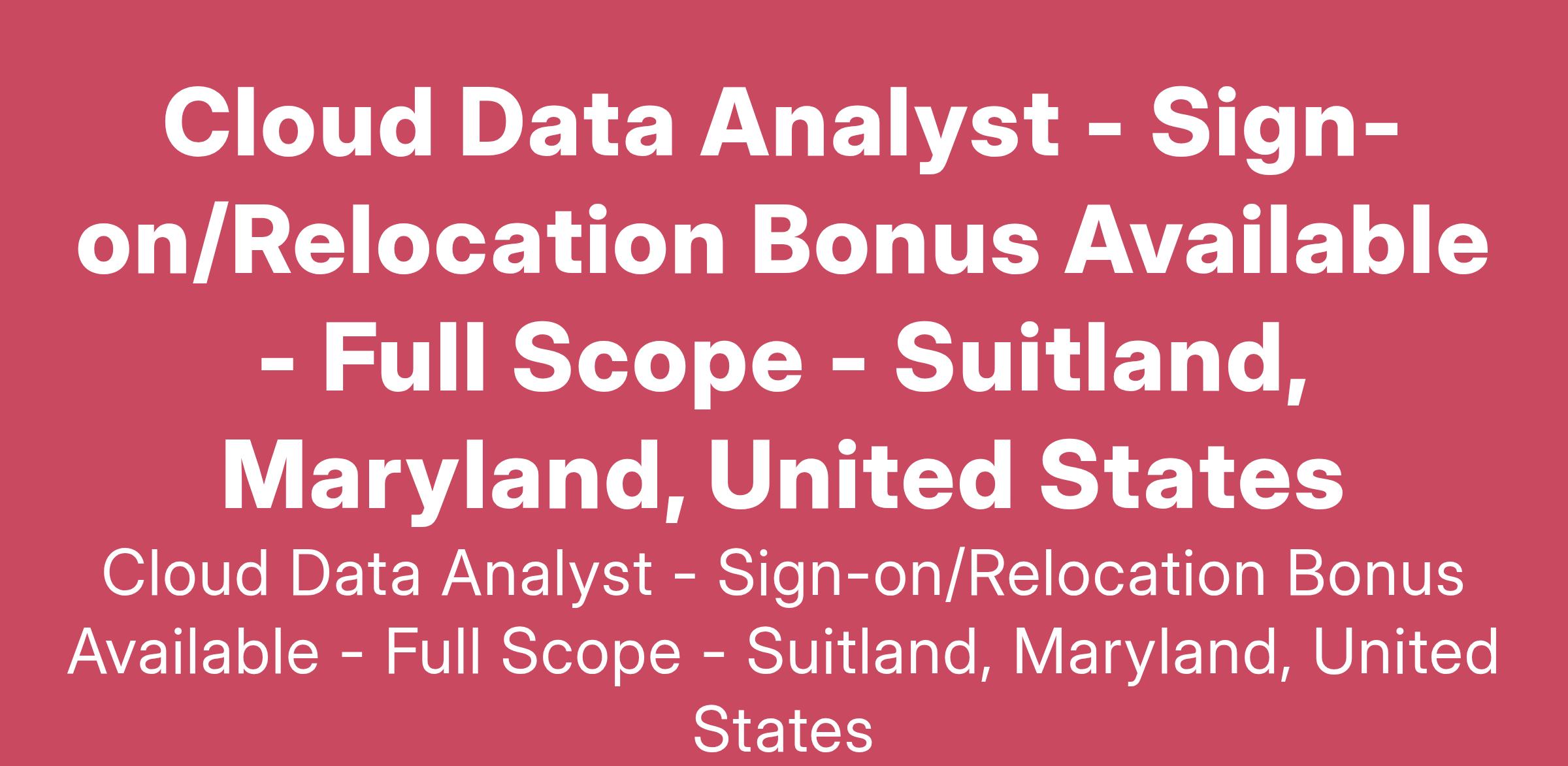 Sign On/ Relocation Bonus Available
