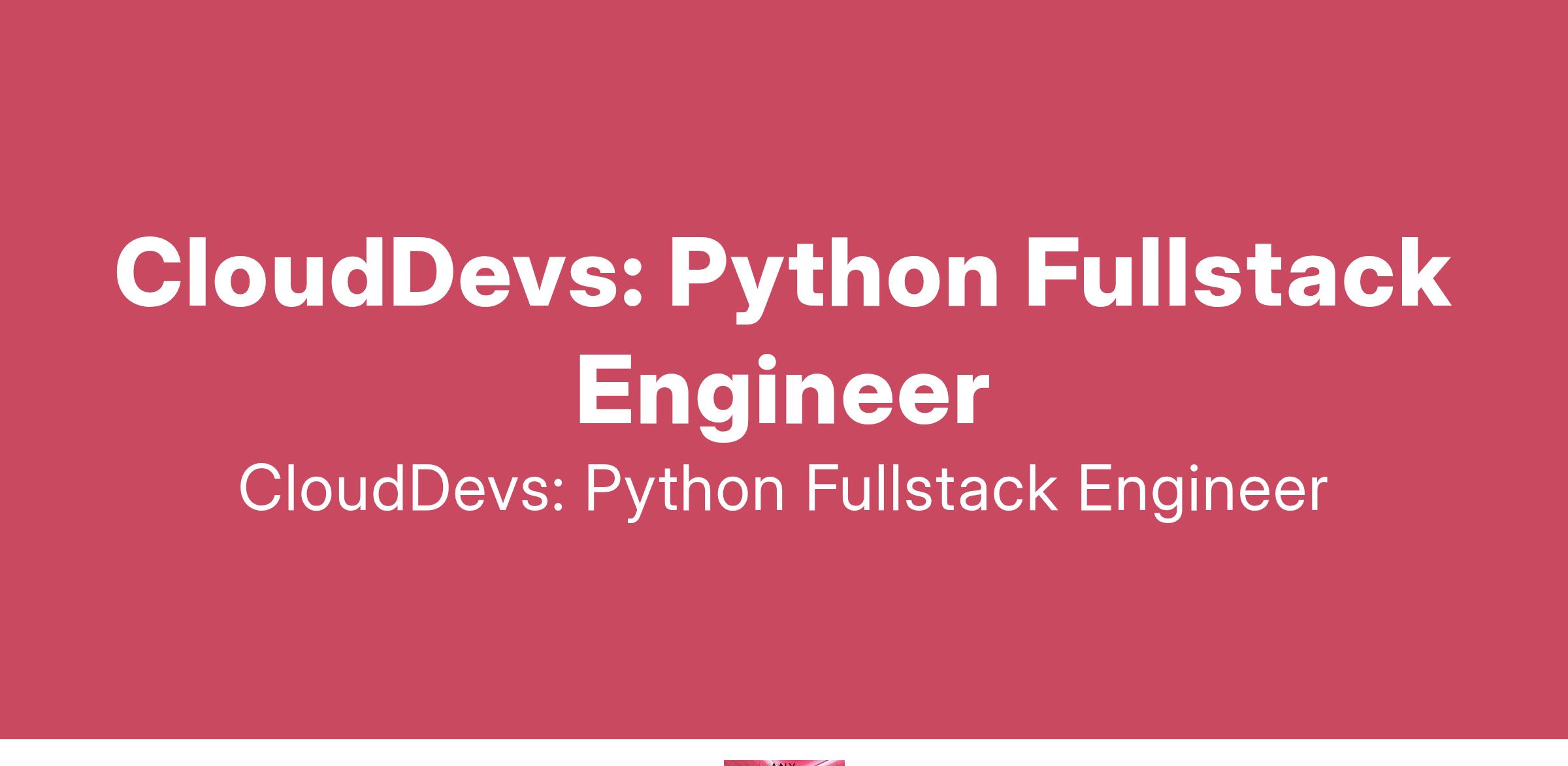 To apply: https://weworkremotely.com/remote-jobs/clouddevs-python-fullstack-engineer-1