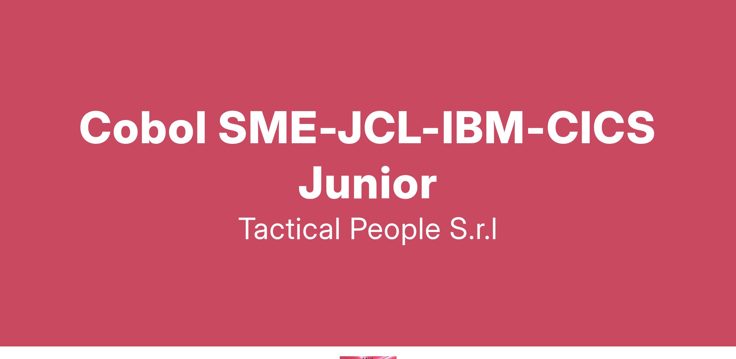 Unisciti a TACTICAL PEOPLE: Innovazione, Persone e Crescita nel Cuore della Digital Transformation Da oltre 20 anni, TACTICAL PEOPLE si posiziona come leader nel mercato ICT, guidando con passione e competenza i nostri clienti di medie e grandi dimensioni attraverso il dinamico percorso della digital transformation. La nostra mission è chiara: non solo abbracciare il cambiamento tecnologico, ma guidarlo, creando soluzioni all'avanguardia che plasmino il futuro digitale. In TACTICAL PEOPLE, crediamo fortemente nel mettere le persone al centro di ogni nostra iniziativa. Le persone sono il cuore pulsante della nostra azienda; il loro benessere, la loro crescita e il loro sviluppo sono la nostra priorità. Ci impegniamo a condividere le strategie aziendali con trasparenza e a fornire formazione e supporto a ogni livello, garantendo che ogni membro del team sia equipaggiato per eccellere e innovare. Stiamo cercando individui che condividano la nostra visione, che siano guidati dalla passione per la tecnologia e che desiderino essere protagonisti nella costruzione di un futuro digitale più luminoso. Se sei pronto a far parte di una squadra che valorizza il talento, incoraggia la crescita personale e professionale e lavora in prima linea nel settore della digital transformation, TACTICAL PEOPLE è il posto giusto per te. Posizione Aperta: Cobol SME-JCL-IBM-CICS Junior Sede: Verona Descrizione del ruolo: Il candidato ideale deve avere almeno 2-4 anni di esperienza professionale nello sviluppo su piattaforma mainframe. Cosa offriamo: Inserimento immediato in una Tech Community giovane e dinamica. TACTICAL LEARNING HUB, con corsi di aggiornamento e formazione. Il presente annuncio è rivolto ad entrambi i sessi, ai sensi delle leggi 903/77 e 125/91, e a persone di tutte le età e tutte le nazionalità, ai sensi dei decreti legislativi 215/03 e 216/03. I curricula dovranno pervenire completi di dicitura che autorizza il trattamento dei propri dati: “Si autorizza al trattamento dei dati personali ai sensi del D. Lgs. 196/2003.