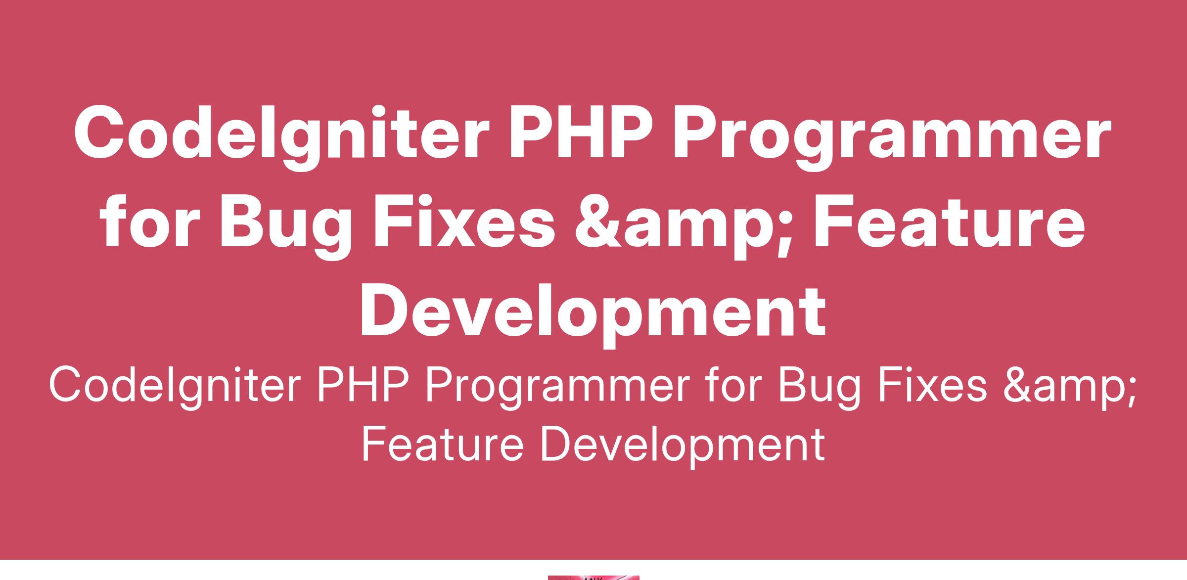I'm in need of a skilled PHP programmer with experience in CodeIgniter to help me with bug fixing and minor feature development. The tasks will primarily revolve around the CodeIgniter platform. If you're... (Budget: $8 - $15 USD, Jobs: Codeigniter, HTML, MySQL, PHP, WordPress)