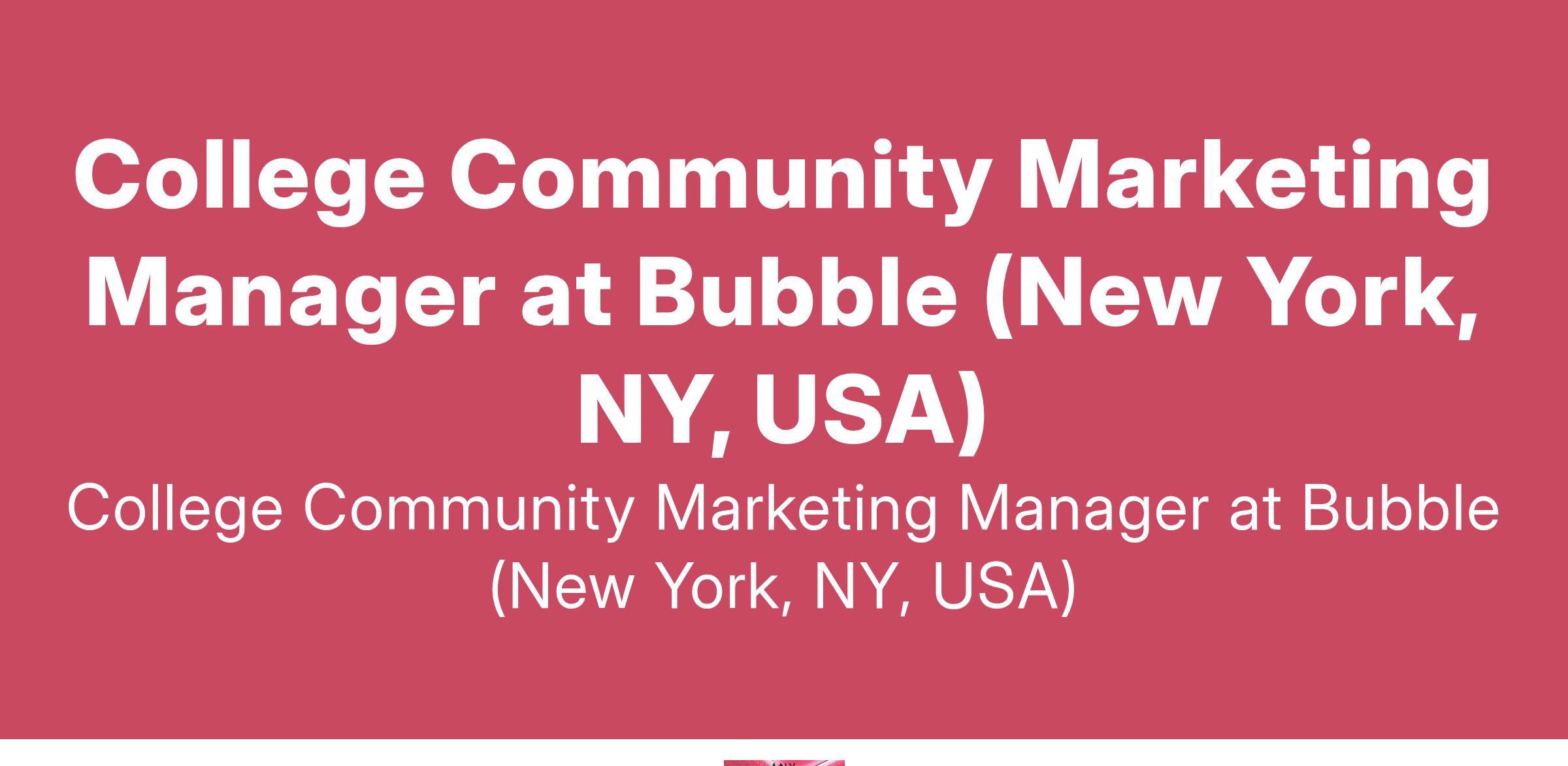 College Community Marketing Manager at Bubble (New York, NY, USA)