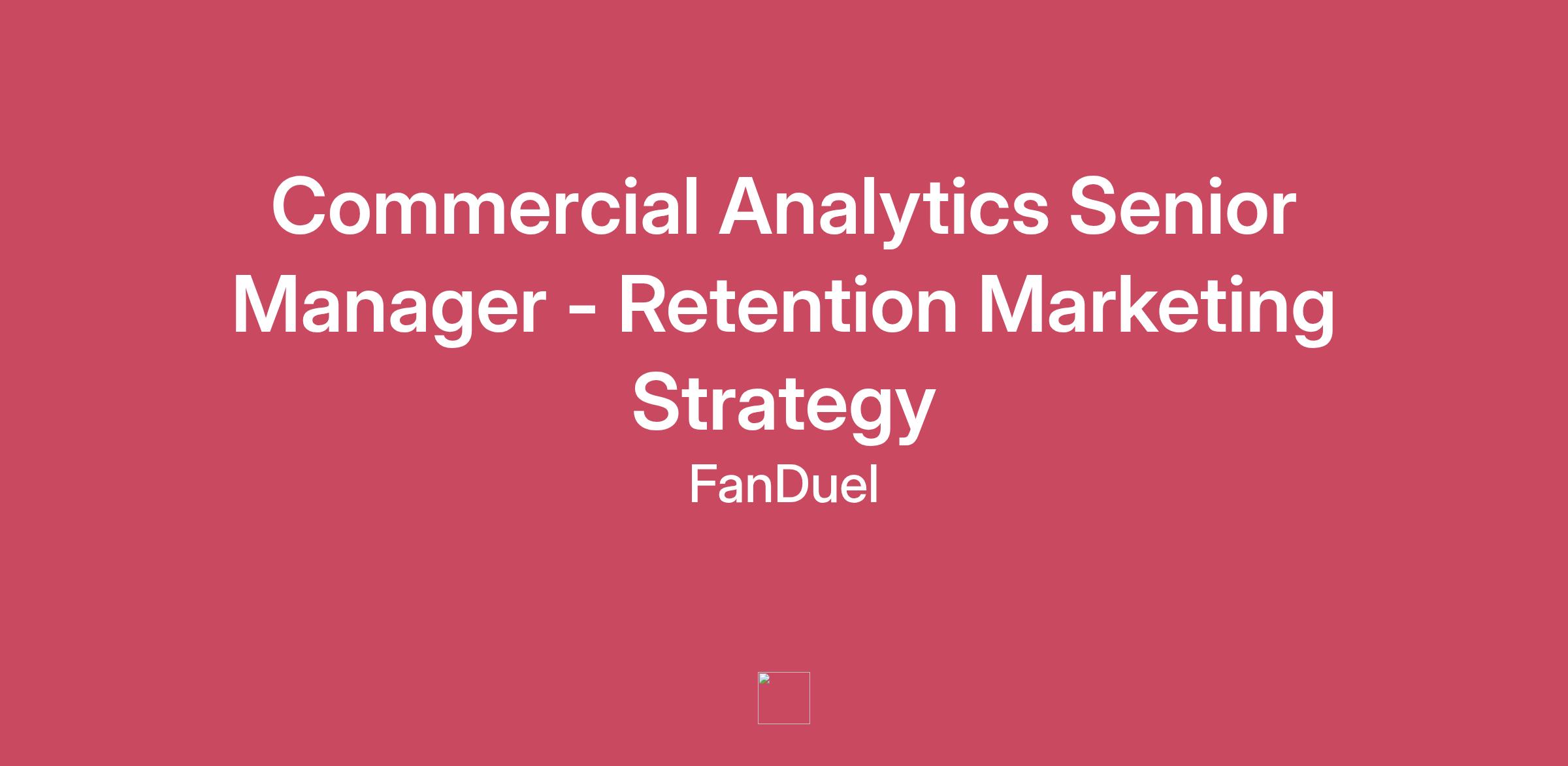 Commercial Analytics Senior Manager - Retention Marketing Strategy