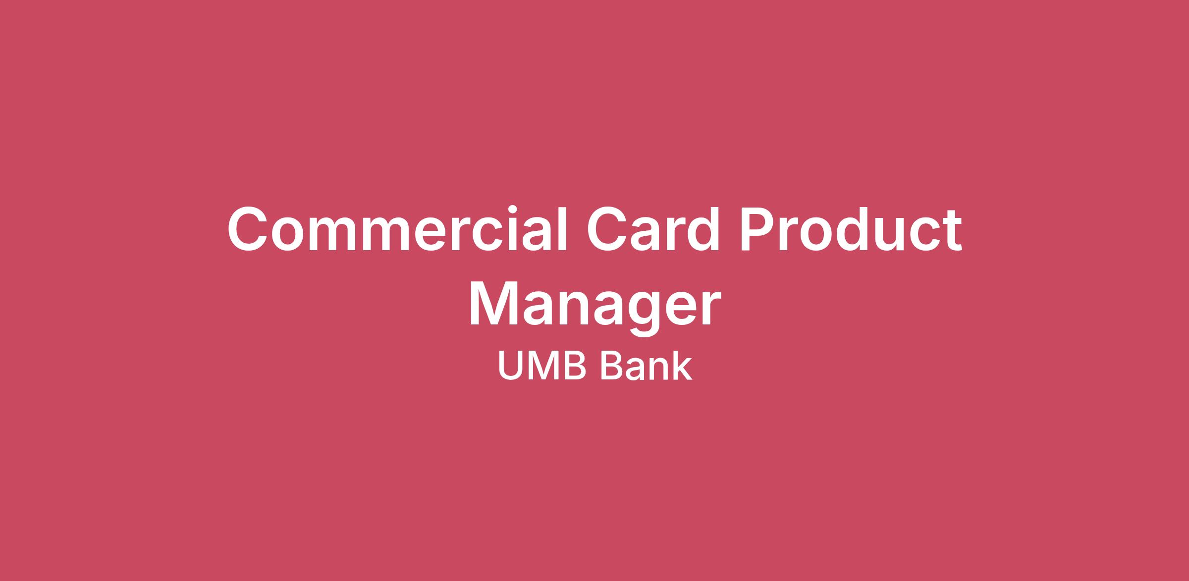 The Commercial Card Product Group manages payment solutions for the Bank’s clients, including small businesses and corporations.As the Commercial Card Product Manager, you will be a thought leader around the execution to expand and develop strategy to support UMB’s Commercial card solutions. You will conduct market research and competitive analysis, define product features and functionality, and among many other critical activities. This is a subset of the overall responsibilities which involves other multiple initiatives as assigned by Bank Product leadership. This role is hybrid (Mon through Thu on-site / Fri remote) for candidates in the Kansas City metropolitan area and open to qualified remote candidates outside of the Kansas City area. However, the remote location must be within the US.How you will spend your time: Manages the complete product process, including the proposal, filing, and implementation of all pricing and product changes.Assess clients’ and prospects' needs, technology trends, and major competitors in order to synthesize product requirements while utilizing market/client/industry research and analysis to develop and maintain a long-range product roadmap.Work with clients on big picture activities including working with senior project manager on preparing formal or informal plans to meet client goals and reach client target audiences.Participate in the development, execution, monitoring, and progress reporting of strategies with the goal of achieving profitability and growth.Oversee all production activity including the review of copy for regulatory compliance, printer proofs, distribution memos and expense allocations.Assist in developing comprehensive business cases, including financial impact, for adding new products or changing existing products.Assist in developing Functional Requirements/Vision Documents that define product enhancements and development initiatives.Assist with Concept, Vision, and requirements definition documents, and sales and marketing tools.Manage timelines and responsibilities for internal and external resources to launch products on time and within budget.Educate and train (when applicable) other departments and teams on value/benefits of new product.We are excited to talk if you have: A Bachelor’s Degree in a related field and at least 5 years of full lifecycle product development experience OR any combination of education and experience that would provide an equivalent background.In-depth experience with product marketing or project management including product launches.Commercial card, prepaid, processor or association background.A goal-oriented mindset with ability to not only conceptualize products but also manage and optimize them throughout their lifecycle.Success leading cross-functional teams and influencing various management levels.Applicants must have legal authority to work in the United States. Work Visa sponsorship is not available for this position.Deadline to apply: May 31, 2026Compensation Range:$83,200.00 - $178,800.00The posted compensation range on this listing represents UMB’s standard for this role, but the actual compensation may vary by geographic location, experience level, and other job-related factors. In addition, this range does not encompass the full earning potential for this role. Please see the description of benefits included with this job posting for additional information.UMB offers competitive and varied benefits to eligible associates, such as Paid Time Off; a 401(k) matching program; annual incentive pay; paid holidays; a comprehensive company sponsored benefit plan including medical, dental, vision, and other insurance coverage; health savings, flexible spending, and dependent care accounts; adoption assistance; an employee assistance program; fitness reimbursement; tuition reimbursement; an associate wellbeing program; an associate emergency fund; and various associate banking benefits. Benefit offerings and eligibility requirements vary.Are you ready to be part of something more?You're more than a means to an end—a way to help us meet the bottom line. UMB isn't comprised of workers, but of people who care about their work, one another, and their community. Expect more than the status quo. At UMB, you can expect more heart. You'll be valued for exactly who you are and encouraged to support causes you care about. Expect more trust. We want you to do the right thing, no matter what. And, expect more opportunities. UMBers are known for having multiple careers here and having their voices heard.UMB and its affiliates are committed to inclusion and diversity and provide employment opportunities to all employees and applicants for employment without regard to race, color, religion, sex (including gender, pregnancy, sexual orientation, and gender identity), national origin, age, disability, military service, veteran status, genetic information, or any other status protected by applicable federal, state, or local law. If you need accommodation for any part of the employment process because of a disability, please send an e-mail to talentacquisition@umb.com to let us know the nature of your request.If you are a California resident, please visit our Privacy Notice for California Job Candidates to understand how we collect and use your personal information when you apply for employment with UMB.
