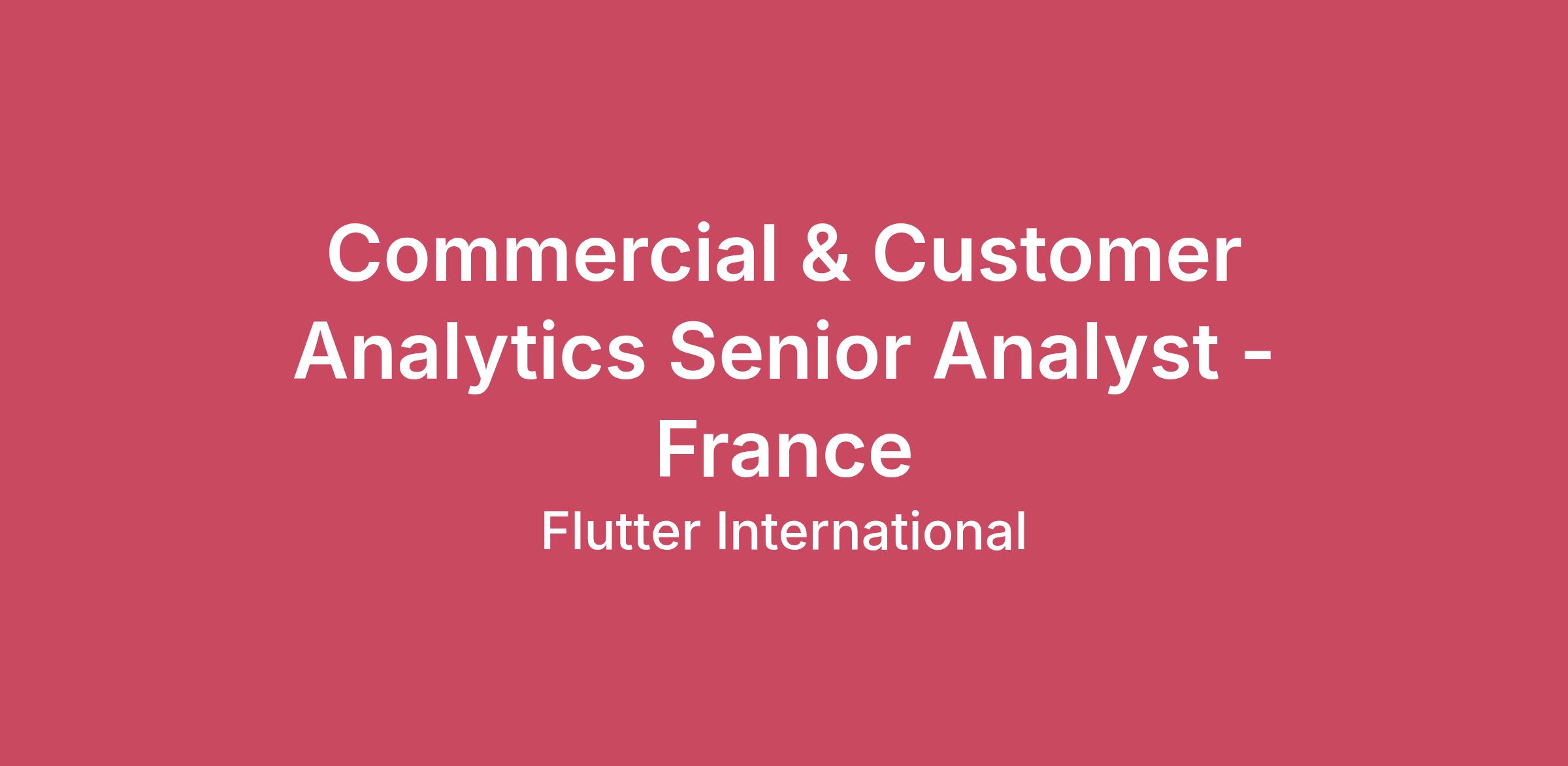 Job Title: Commercial & Customer Analytics Senior Analyst - France
