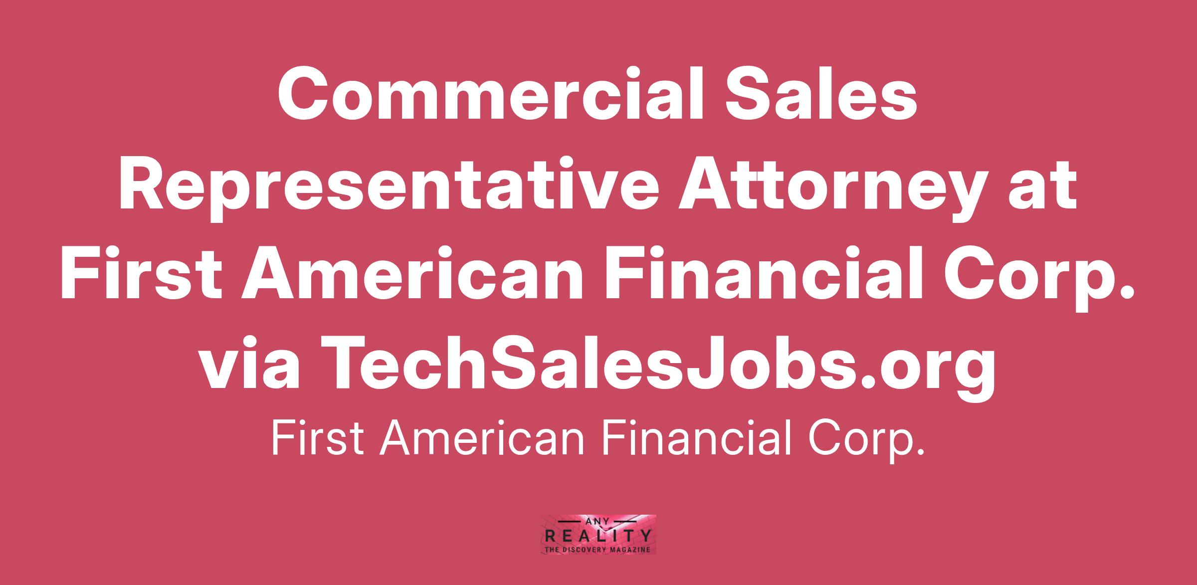 Empower and enable motivated, high-performance individuals looking to leverage their sales skills to deliver superior results in the commercial real estate industry. First American is looking to add a Commercial Sales Representative to our growing team. This position plays a key role in transforming the commercial real estate experience by empowering our employees and customers to deliver next-generation solutions and results. Leverage a premier brand, products, and services with the support of leading technology to meet your goals. Working in your assigned territory, you will develop and retain a quality commercial client base through the acquisition of new business and maintenance of existing customers, while being fully supported to attain maximum sales volume using our first-class tools and resources.What You’ll Do:Build client relationships, secures orders from new customers, and maintains and expands business with existing client base.Leverage industry data to identify and compile lists of prospective customers for use as sales leads from various sources.Develop and execute on a call plan for qualified real estate agents, brokers and their staff, lenders, and attorneys.Assess individual client needs and develop and implement a plan to meet those needs.Effectively create and deliver presentations to customer groups, target customers, agents, and others both in person and virtually.Maintain high visibility in his/her marketing area by attending real estate industry functions and participating in community and real estate events.Collaborate with internal marketing teams to develop local marketing content (print, electronic) and social media presence to drive brand awareness to support sales strategy.What You’ll Bring:Law degree required.Ability to listen to clients and understand their needs and objectives to better respond and provide solutions.Demonstrated persistence, tenacity, and consistency.Proven accountability for work and results.Adapts strategy to changing conditions.Ability to successfully connect with clients in person and virtually.High School diploma or equivalent required.Must possess valid driver’s license.Monthly commissions in addition to the annual base salary pay range: $80,000.00 - $90,000.00 Annually. This hiring range is a reasonable estimate of the base pay range for this position at the time of posting. Pay is based on a number of factors which may include job-related knowledge, skills, experience, business requirements and geographic location.What We Offer