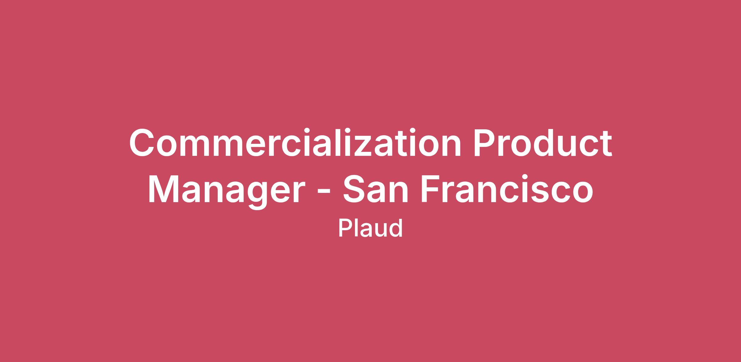 About Plaud Inc.Plaud is building the world's most trusted AI work companion for professionals to elevate productivity and performance through note-taking solutions, loved by over 1,500,000 users worldwide since 2023. With a mission to amplify human intelligence, Plaud is building the next-generation intelligence infrastructure and interfaces to capture, extract, and utilize what you say, hear, see, and think.Plaud Inc. is a Delaware-incorporated, San Francisco-based company pushing the boundary of human–AI intelligence through a hardware–software combination. With ISO 27001, ISO 27701, GDPR, SOC 2, HIPAA, and EN 18031 compliance, Plaud is committed to the highest standards of data security and privacy protection.To learn more about Plaud, please visit https://www.plaud.ai and follow along on Instagram, X, Facebook, LinkedIn, and YouTubeWhy You Should Join UsPlaud is building the next generation intelligence infrastructure and interfaces to capture, extract, and utilize intelligence from what people say, hear, see, and think.Plaud is a bootstrapped, skyrocketing, profitable company with a $250M revenue run rate achieved in just three years.Define the next-gen paradigm for human-AI interaction.Gain exposure to cutting-edge AI for Pro tools and play a direct role in our global expansion.Work with passionate teammates who value innovation, collaboration, and customer success.Grow your career in a culture that champions continuous learning and fast career development.Market-competitive compensation, global exposure, and a vibrant, creativity-fueled work atmosphere.What you will doLead the strategy and execution of commercial product initiatives, including redesigning subscription models and paid features.Plan and execute cross-platform user migration strategies, including payment platform transitions to optimize cost and experience (e.g., iOS → Stripe).Collaborate with engineering, design, and data analytics team to implement commercial features and ensure smooth rollout.Analyze user behavior, revenue impact, and adoption metrics to continuously refine commercial strategies and improve monetization.Skills, qualifications and experience we look forBachelor’s degree in Business, Product Management, or a technical field.3+ years of experience in product management, preferably in monetization, subscription Experience designing or optimizing subscription models or paid feature strategies.Strong analytical skills to evaluate user behavior, revenue metrics, and feature adoption.Experience collaborating with engineering teams to implement system-level product changes.Preferred QualificationsExperience in subscription-driven hardware + software products.Knowledge of payment platforms and experience designing cross-platform migration strategies.Ability to think strategically about business models while driving execution at the system and feature level.Strong communication and stakeholder management skills.Passion for designing monetization strategies that balance user experience and revenue growth.What we offer Meaningful Ownership An Employee Stock Ownership Plan (ESOP) that gives a real stake in Plaud’s long-term success.High-Impact Environment Work in a fast-moving, product-driven environment where your ideas directly shape the future of AI productivity.Comprehensive Health & Retirement Benefits Top-tier medical, dental, and vision insurance for employees and dependents, supported by a generous employer subsidy, plus a 401(k) retirement plan with company matching for full-time employees.Time Off & Workplace Benefits Unlimited PTO, plus 13 paid holidays, 12 weeks of fully paid parental leave for all parents, a hybrid work model with a minimum of three in-office days per week, and access to high-quality office snacks, drinks, and equipment.Cutting-Edge AI Tools for Productivity Access to best-in-class AI tools, including Cursor, GPT models, Gemini, Claude, and other frontier AI systems to maximize engineering and execution efficiency.Best-in-Class Equipment Choice of top-spec laptops, high-performance workstation setups, and cutting-edge Plaud devices for all new hires.Team & Culture Annual company offsites, team events, and a culture that values craftsmanship, ownership, and velocity.