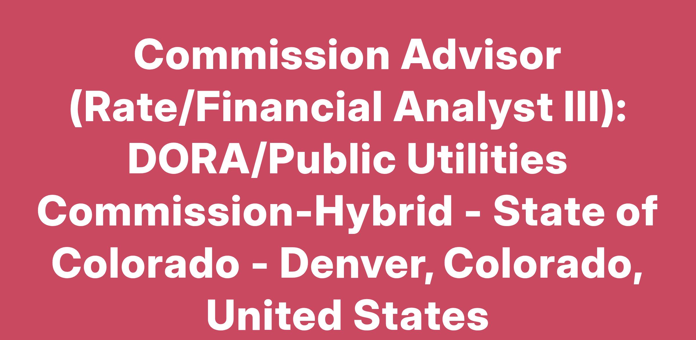 This position will focus on electric and gas distribution utility services, where cases may address topics as varied as electric and gas infrastructure planning, beneficial electrification, customer energy programs, and other technology or policy issues which may at times be on the forefront of industry trends in Colorado and nationwide.