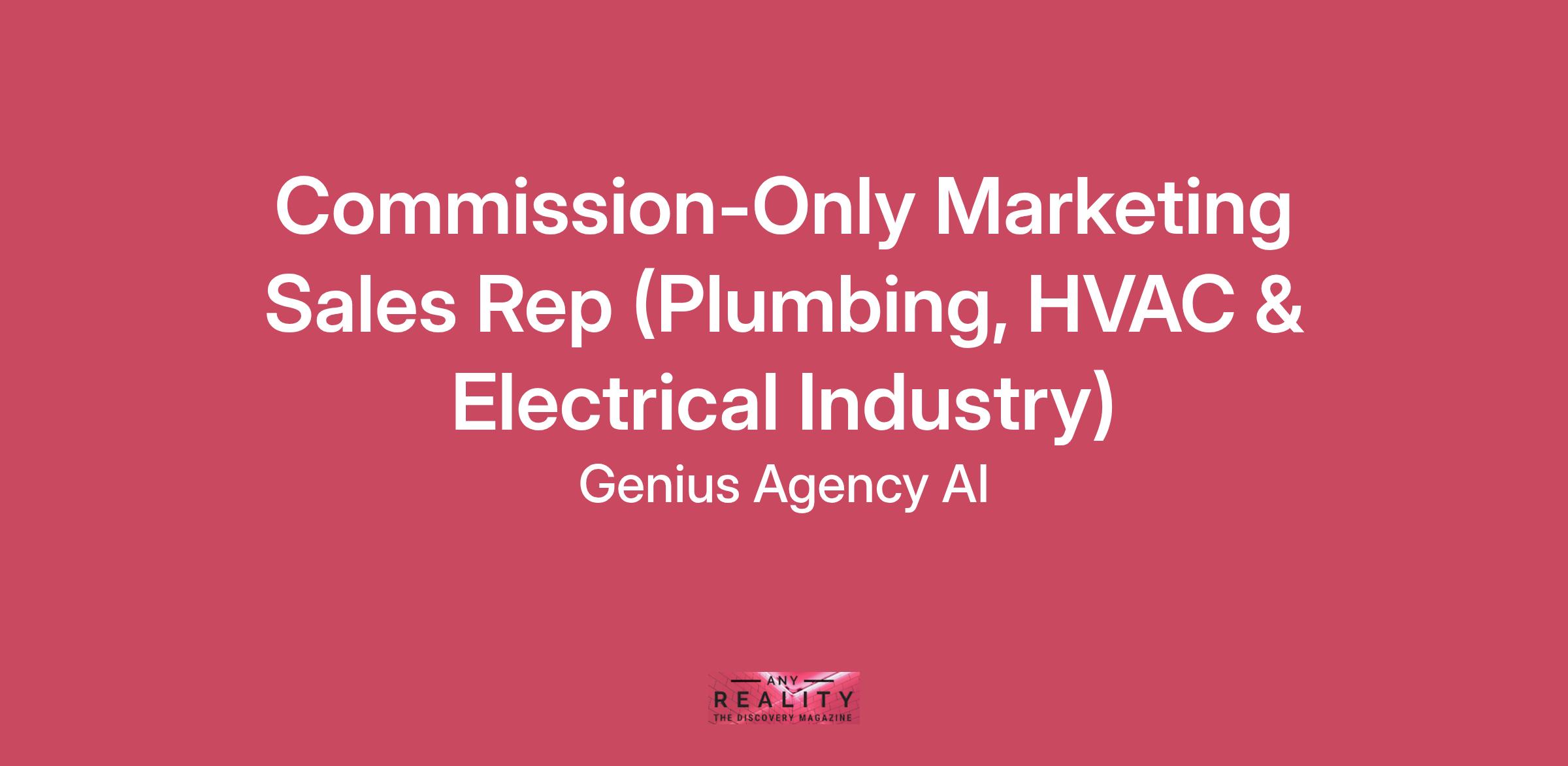 Genius Agency AI is in search of a motivated and results-driven Commission-Only Marketing Sales Representative specializing in the Plumbing, HVAC, and Electrical industries. In this role, you will be responsible for generating new business opportunities and promoting our marketing services tailored specifically for these sectors. This position operates on a commission-only basis, providing you with unlimited earning potential based on your sales performance.ResponsibilitiesIdentify and prospect potential clients within the Plumbing, HVAC, and Electrical sectors through various channels, including cold calling and networking.Understand client needs and provide tailored marketing solutions that enhance their business visibility and growth.Present and effectively articulate the value of our marketing services to potential clients.Negotiate contracts and close deals, ensuring all agreements are accurately processed.Build and maintain strong relationships with clients, ensuring ongoing support and satisfaction.Stay informed about industry trends, competitor strategies, and best practices to identify new sales opportunities. Proven experience in sales, particularly in the Marketing, Plumbing, HVAC, or Electrical industries.Strong understanding of marketing strategies tailored for service-based businesses.Excellent communication, negotiation, and interpersonal skills.Self-motivated and driven by results, with the ability to thrive in a commission-only environment.Demonstrated ability to meet and exceed sales targets.Ability to work independently and manage a sales pipeline effectively.Familiarity with CRM software and sales tools.High school diploma or equivalent; a degree in Marketing or Business is preferred. 100% remote job working in the comforts of your homeNon-toxic environment Growth potential