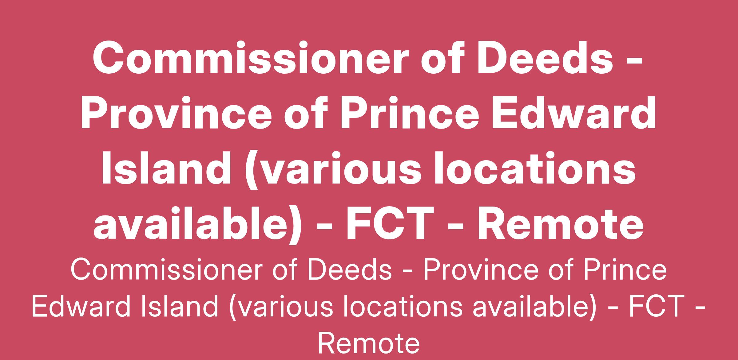 We are continually searching for the best talent; individuals who possess a deep commitment to the customers and markets we serve. We are currently seeking an individual contractor to fulfill the role of Commissioner of Deeds in all areas of Price Edward Island.