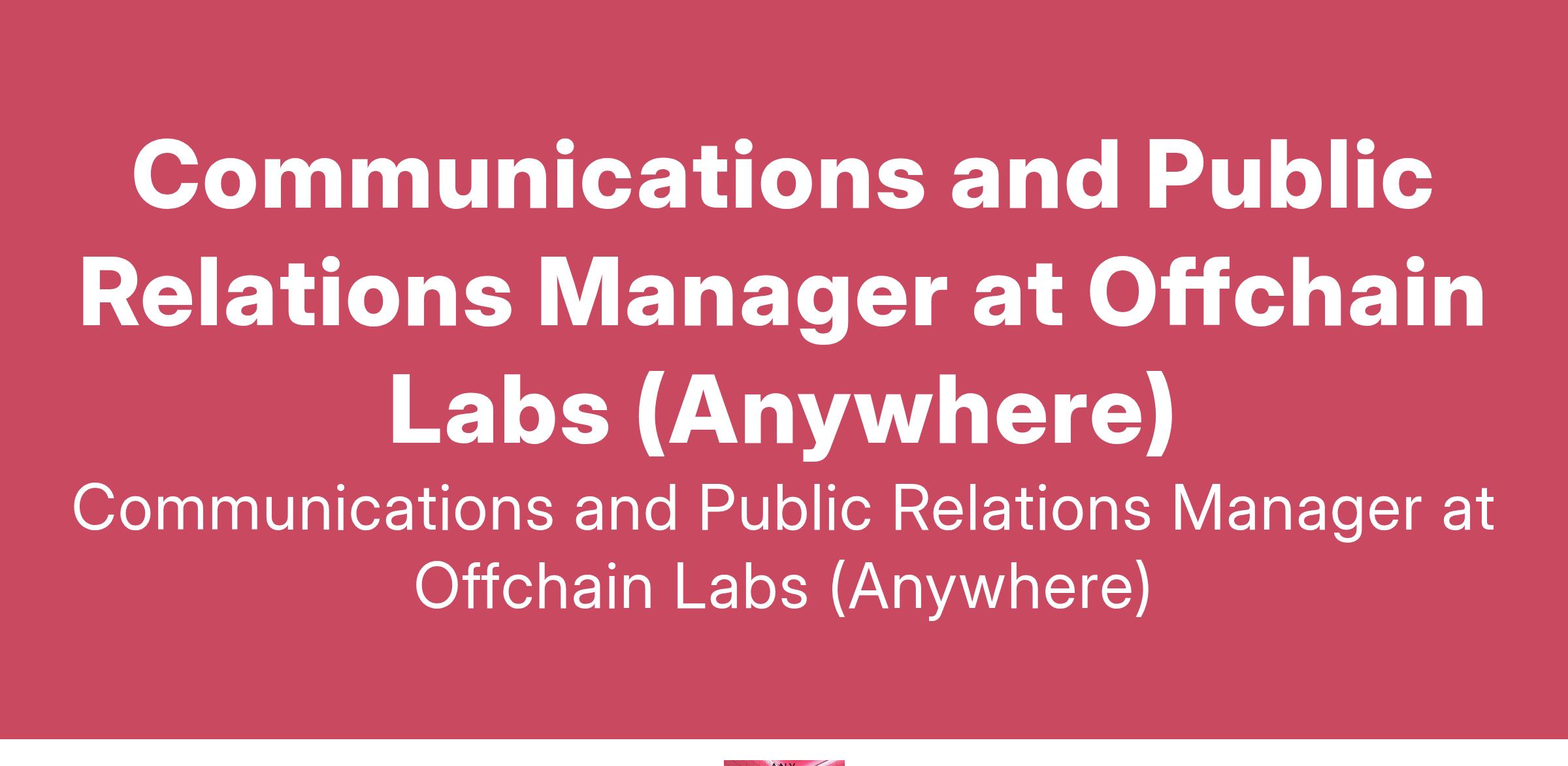 Communications and Public Relations Manager at Offchain Labs (Anywhere)