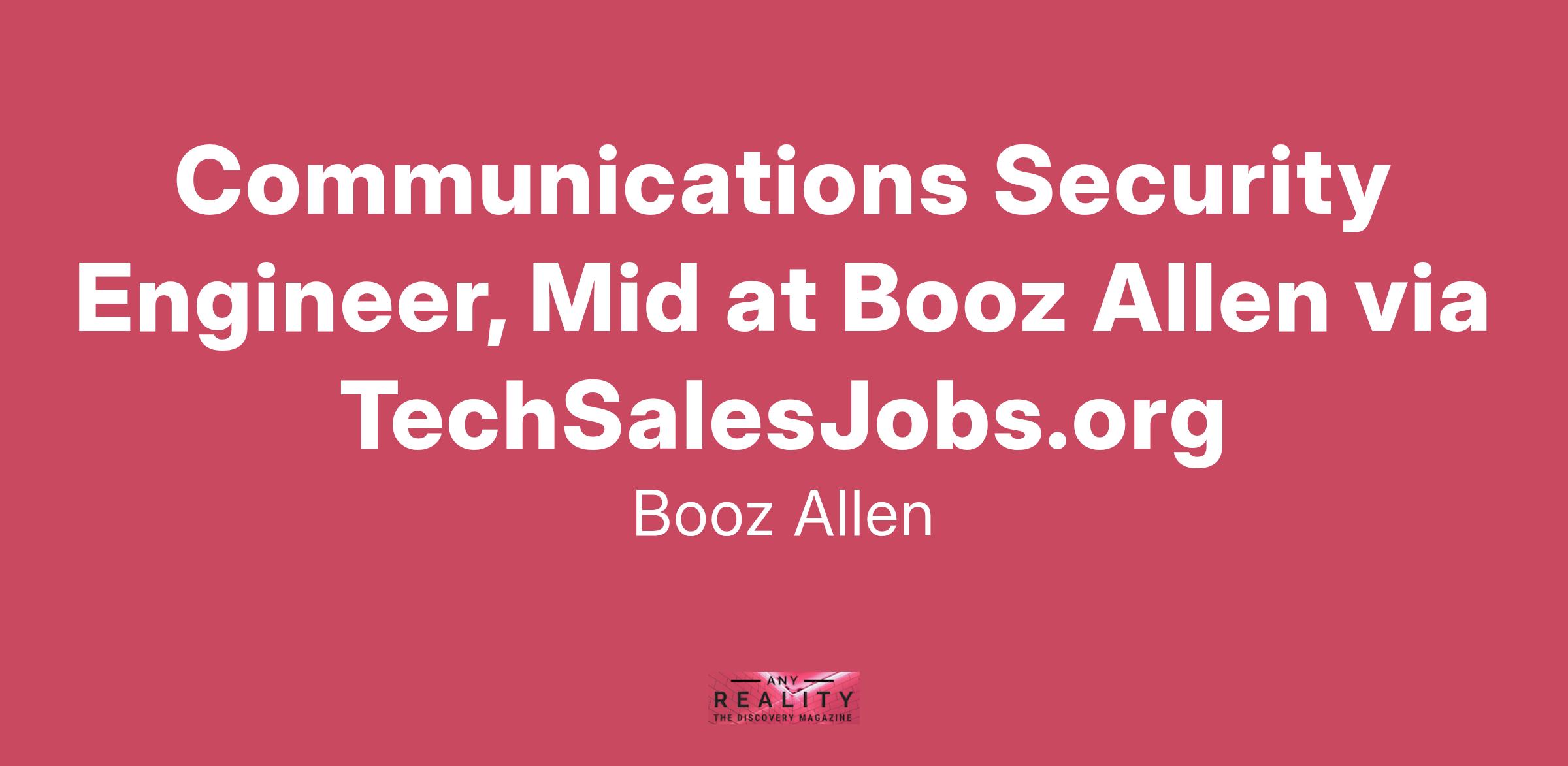 Communications Security Engineer, Mid at Booz Allen via TechSalesJobs.org