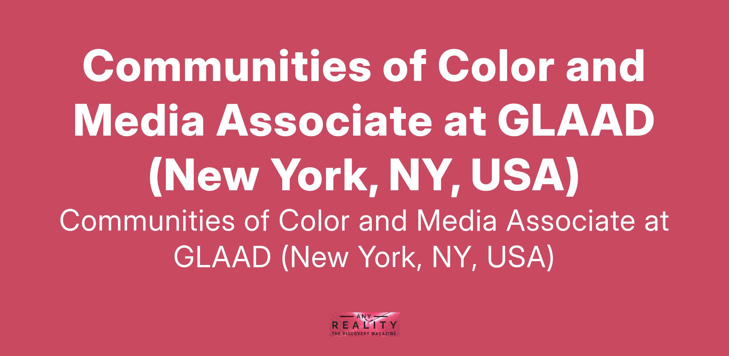 Communities of Color and Media Associate at GLAAD (New York, NY, USA)