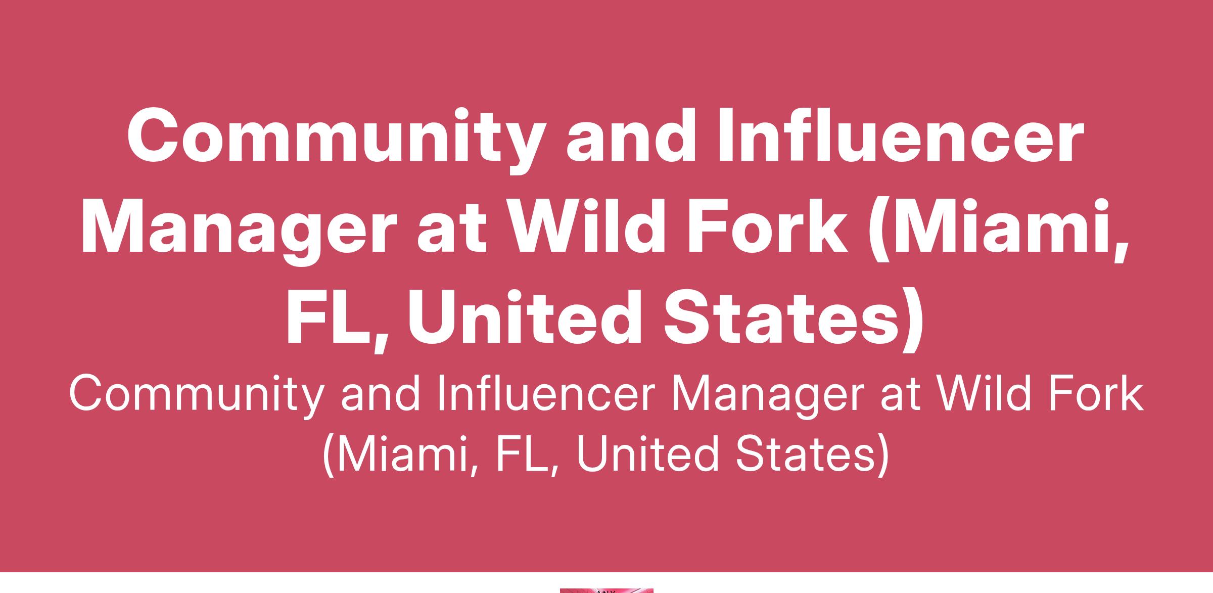 Community and Influencer Manager at Wild Fork (Miami, FL, United States)