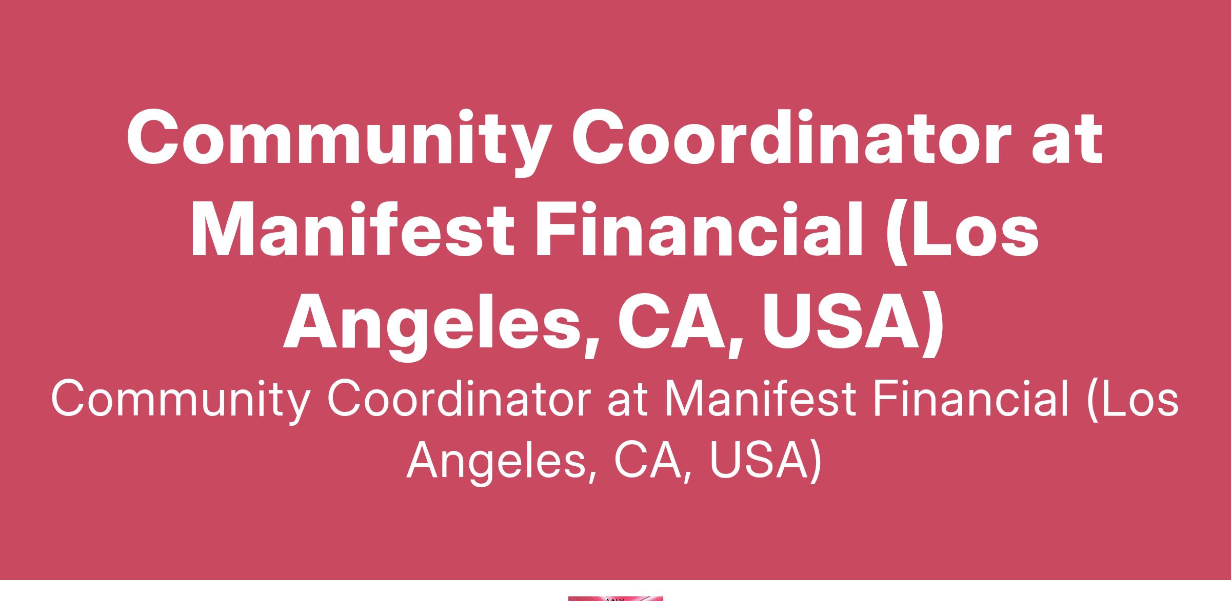 Community Coordinator at Manifest Financial (Los Angeles, CA, USA)