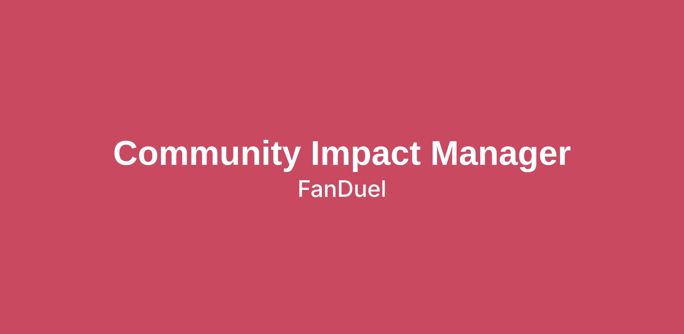 FanDuel is looking to hire a Community Impact Manager to join the Community Impact team. The Community Impact Manager will play a critical role in advancing FanDuel’s corporate citizenship strategy by helping design, operationalize, and scale initiatives that strengthen the company’s presence in the communities where we operate. Reporting into the Responsible Gaming & Community Impact Senior Director, this role will partner closely with Public Affairs, Sustainability, Finance, Communications, and cross-functional leadership to ensure programs are strategic, measurable, and aligned with enterprise priorities.