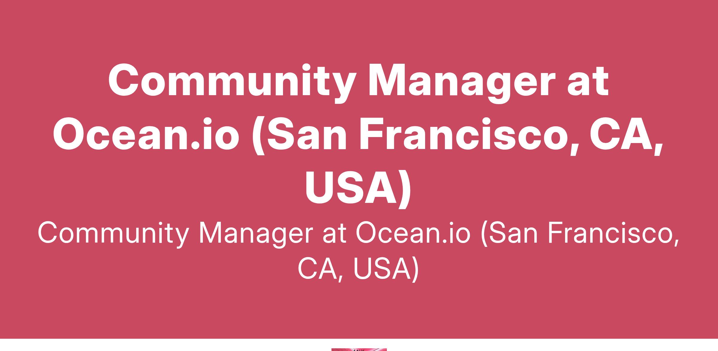 Community Manager at Ocean.io (San Francisco, CA, USA)