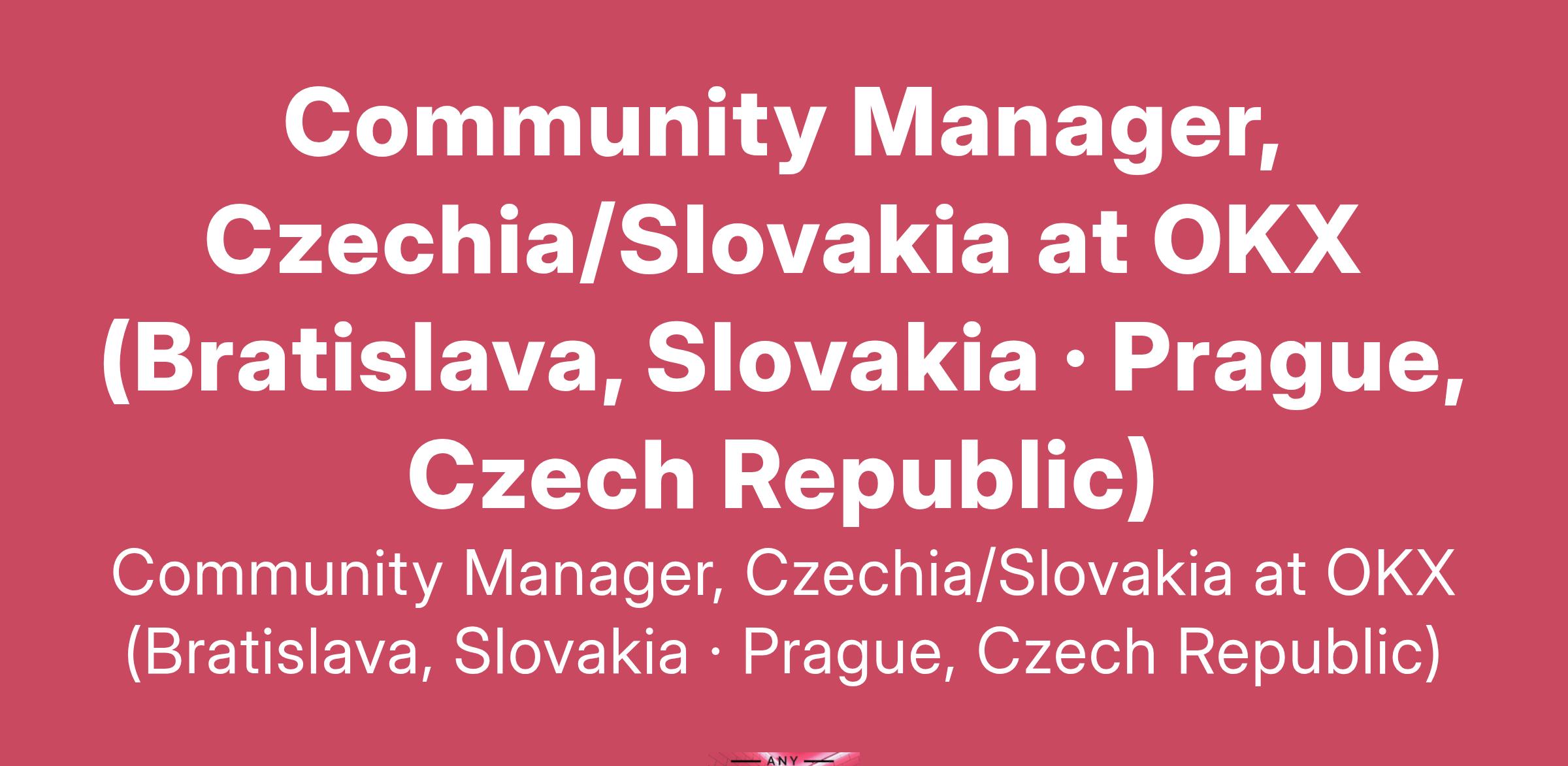 Community Manager, Czechia/Slovakia at OKX (Bratislava, Slovakia · Prague, Czech Republic)