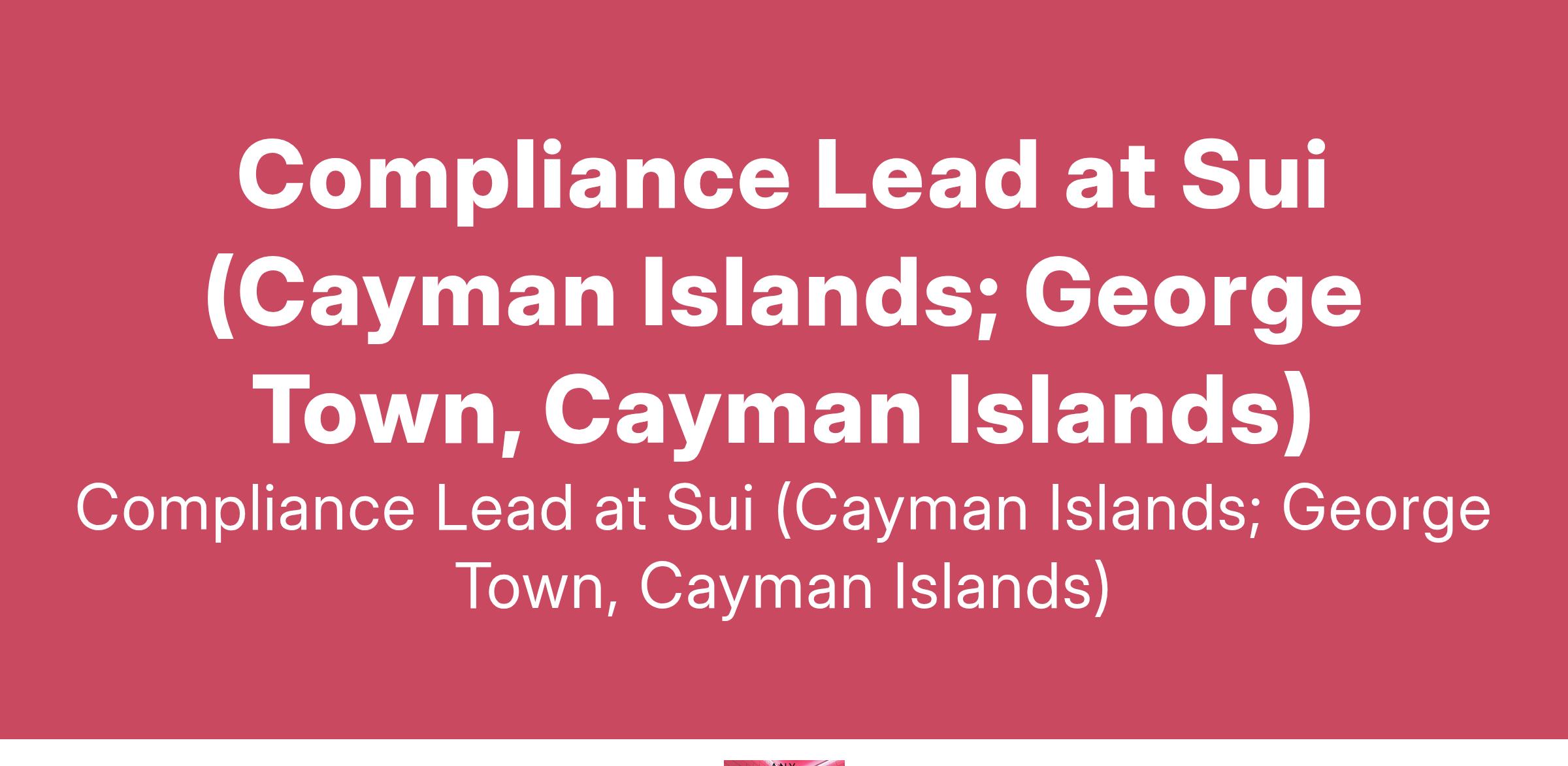 Compliance Lead at Sui (Cayman Islands; George Town, Cayman Islands)