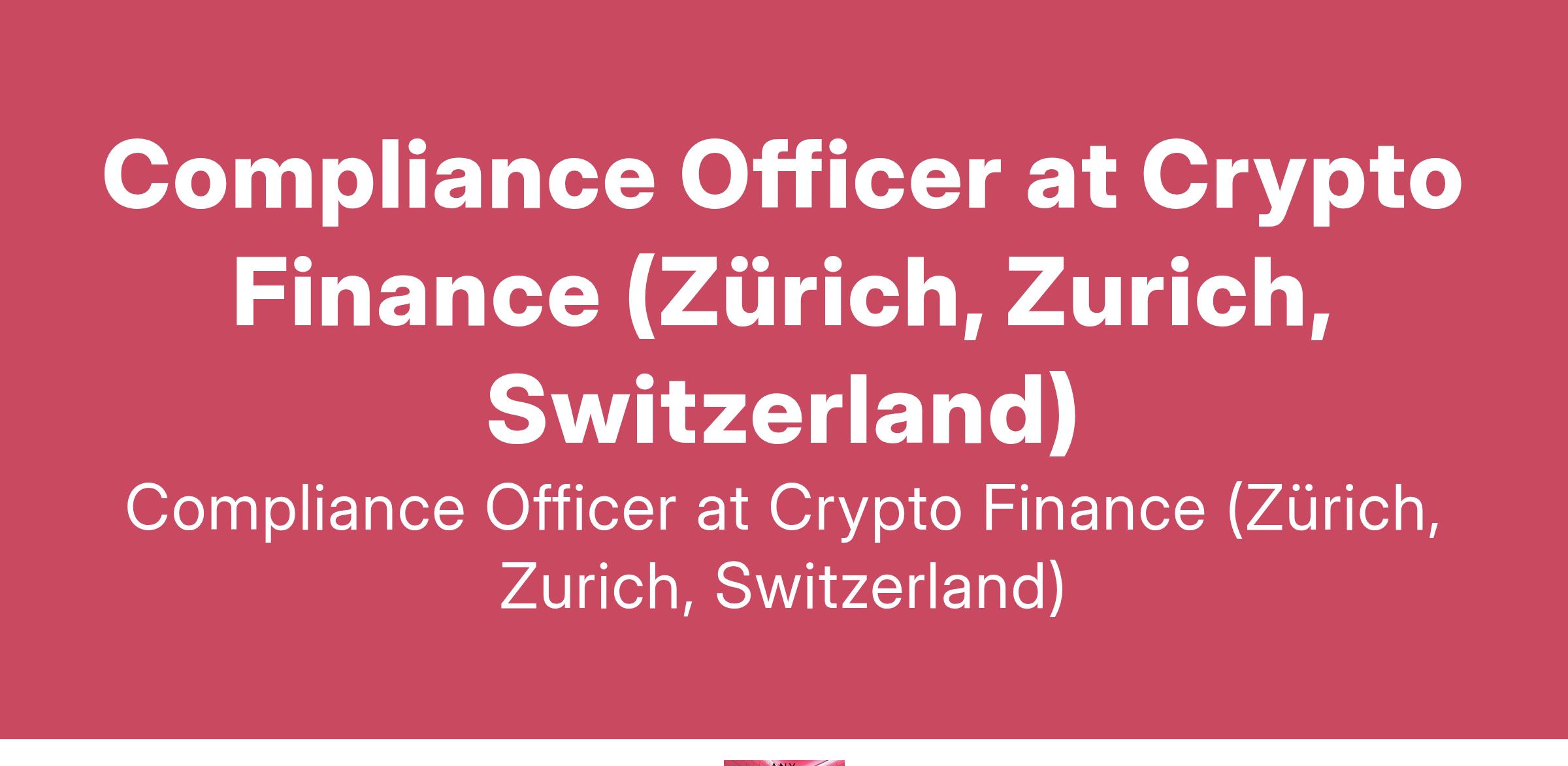Compliance Officer at Crypto Finance (Zürich, Zurich, Switzerland)