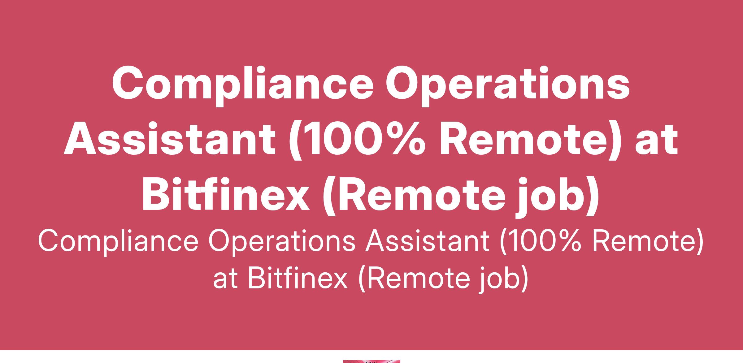 Compliance Operations Assistant (100% Remote) at Bitfinex (Remote job)