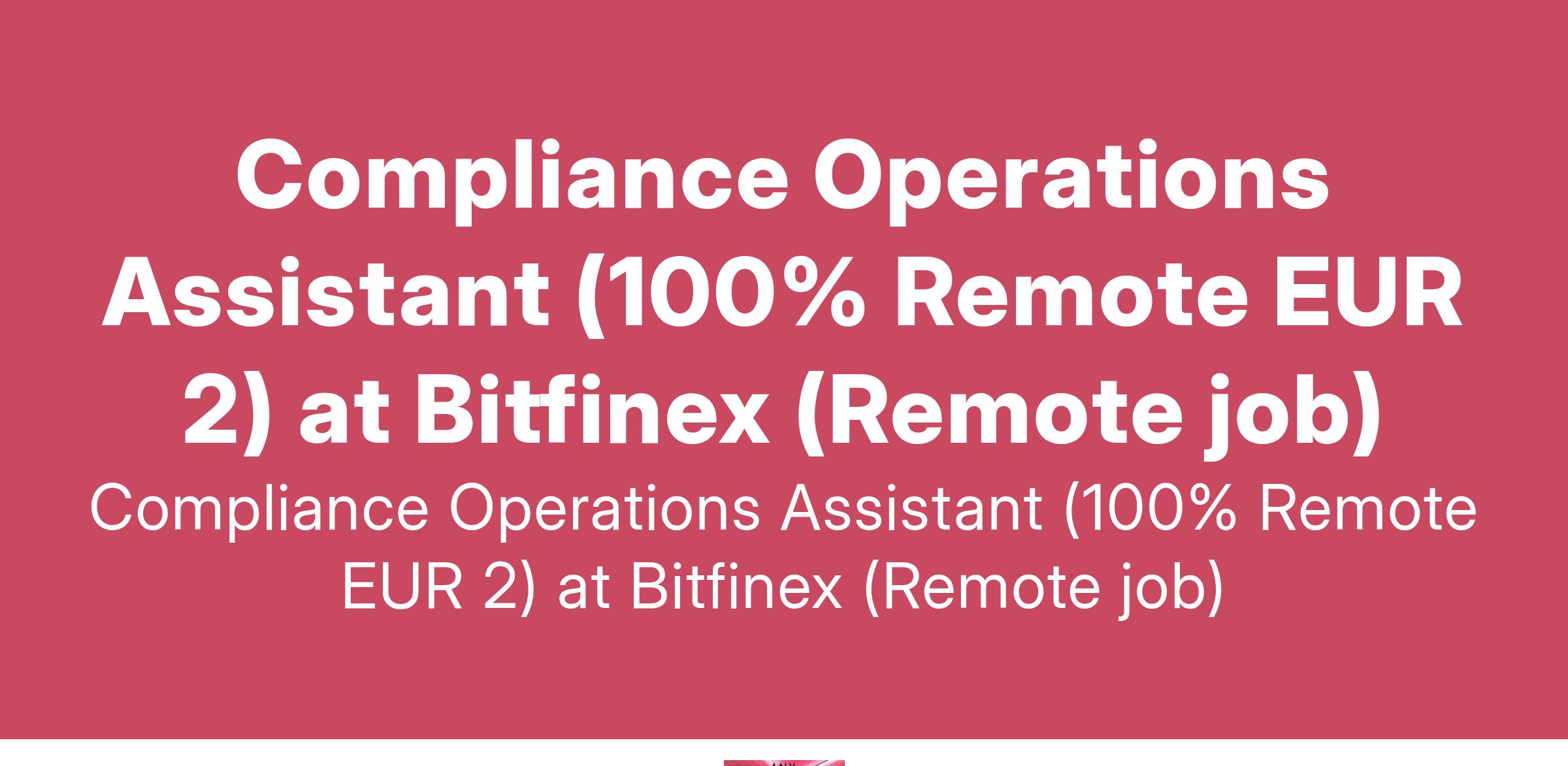 Compliance Operations Assistant (100% Remote EUR 2) at Bitfinex (Remote job)
