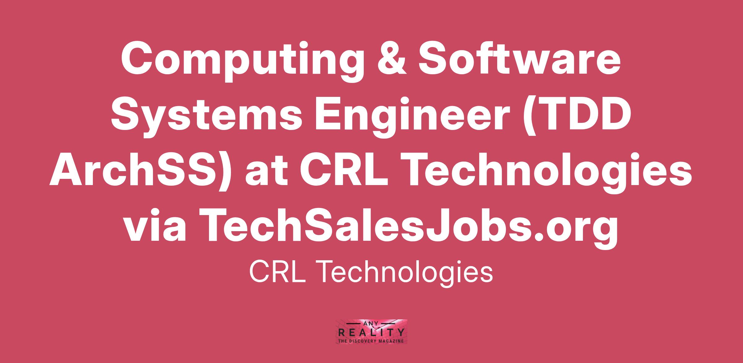 Computing & Software Systems Engineer (TDD ArchSS) at CRL Technologies via TechSalesJobs.org