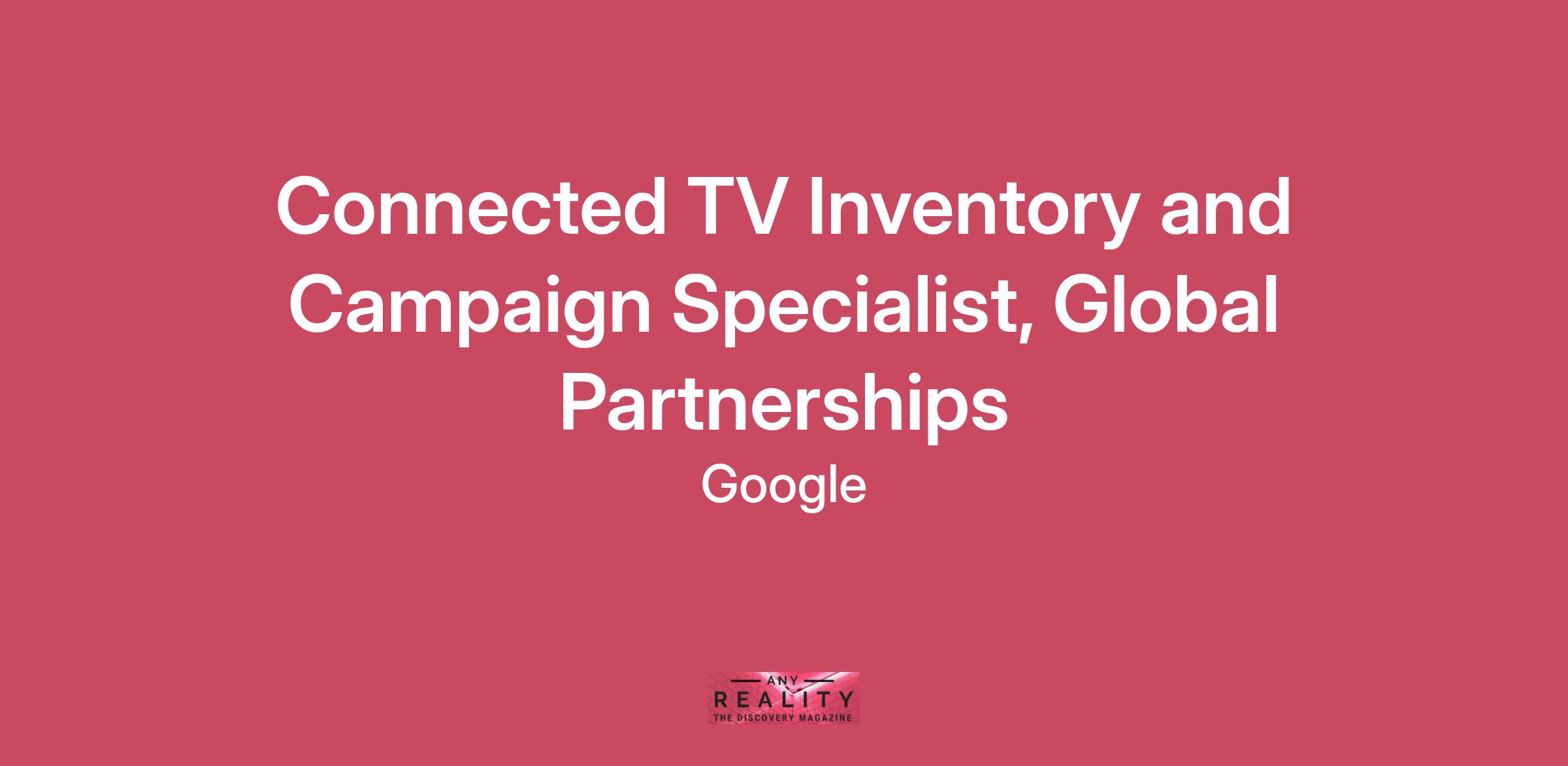 As a Connected Television (CTV) Inventory Specialist, you will drive success for Google’s programmatic business by immersing themselves in both the value proposition and composition of our programmatic supply and executing business against advertiser demand. By focusing on external and internal relationships, you will work to drive business as well as initiatives to improve Google’s offerings by bringing direct market feedback to our business and product teams and improving our standing in the ecosystem. You will enable Google to take advantage of market opportunities and be nimble, delivering exceptional service, identifying opportunities and executing campaigns.