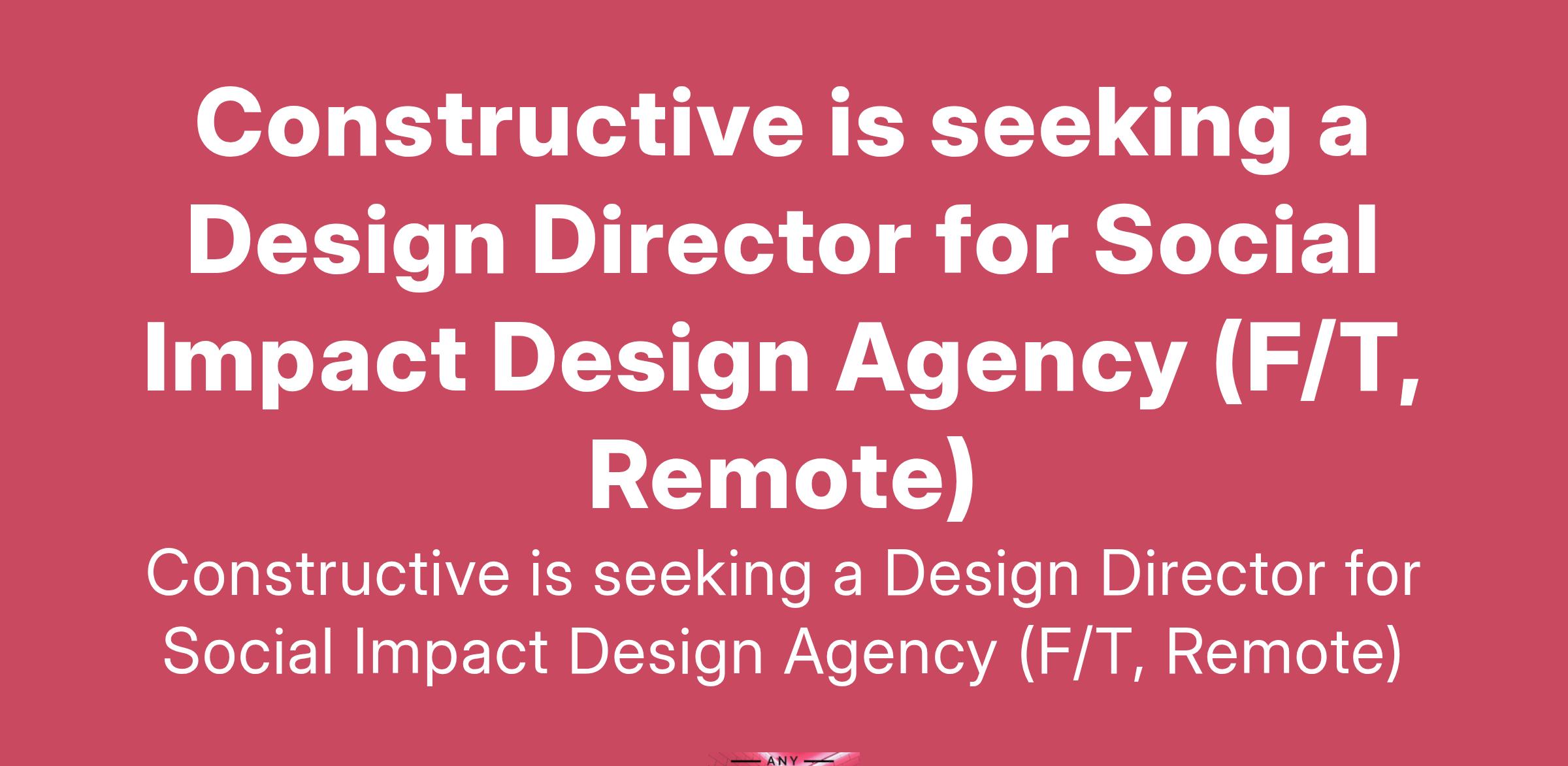 Constructive is seeking a Design Director for Social Impact Design Agency (F/T, Remote)