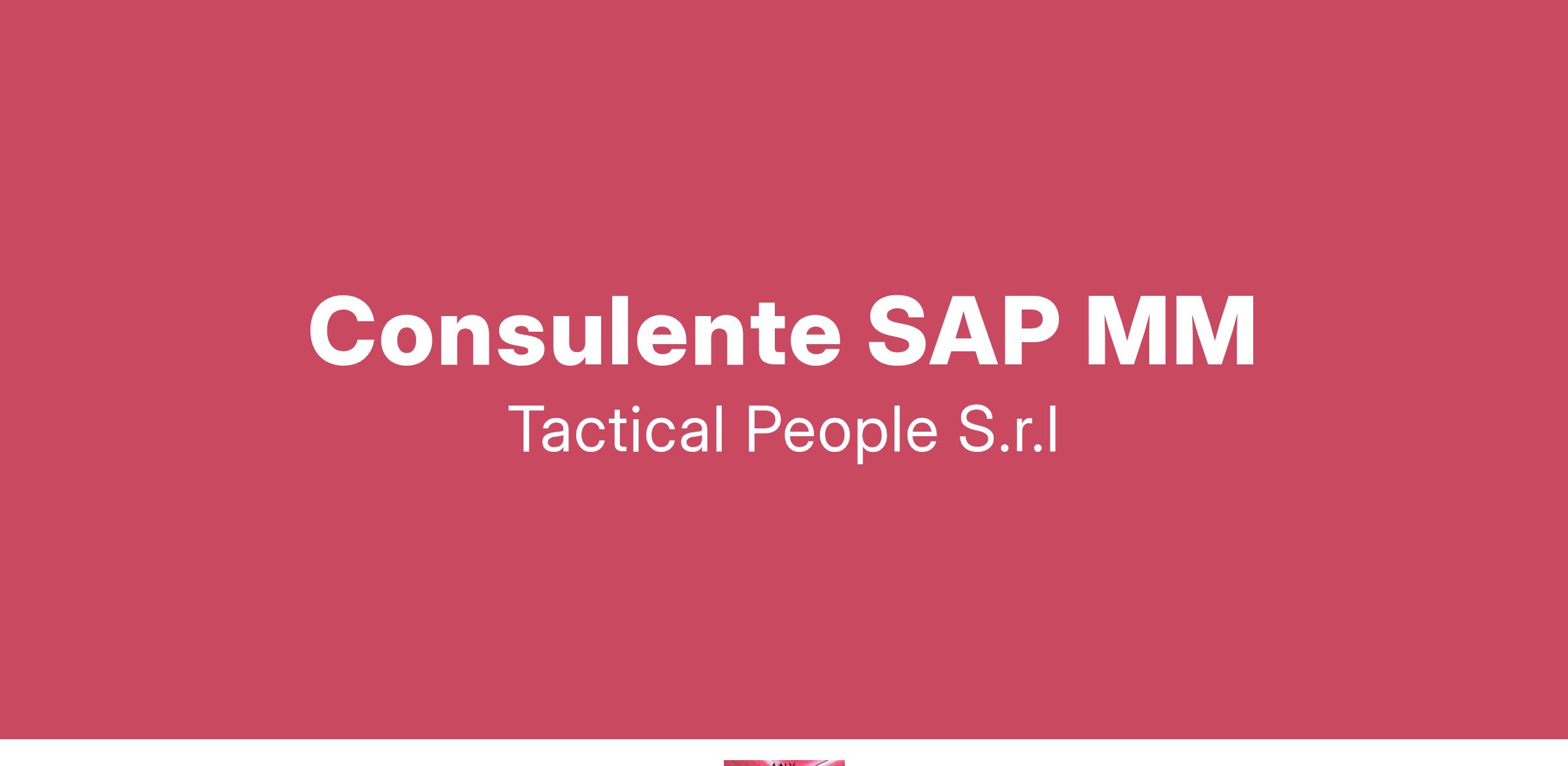 Unisciti a TACTICAL PEOPLE: Innovazione, Persone e Crescita nel Cuore della Digital Transformation Da oltre 20 anni, TACTICAL PEOPLE si posiziona come leader nel mercato ICT, guidando con passione e competenza i nostri clienti di medie e grandi dimensioni attraverso il dinamico percorso della digital transformation. La nostra mission è chiara: non solo abbracciare il cambiamento tecnologico, ma guidarlo, creando soluzioni all'avanguardia che plasmino il futuro digitale. In TACTICAL PEOPLE, crediamo fortemente nel mettere le persone al centro di ogni nostra iniziativa. Le persone sono il cuore pulsante della nostra azienda; il loro benessere, la loro crescita e il loro sviluppo sono la nostra priorità. Ci impegniamo a condividere le strategie aziendali con trasparenza e a fornire formazione e supporto a ogni livello, garantendo che ogni membro del team sia equipaggiato per eccellere e innovare. Stiamo cercando individui che condividano la nostra visione, che siano guidati dalla passione per la tecnologia e che desiderino essere protagonisti nella costruzione di un futuro digitale più luminoso. Se sei pronto a far parte di una squadra che valorizza il talento, incoraggia la crescita personale e professionale e lavora in prima linea nel settore della digital transformation, TACTICAL PEOPLE è il posto giusto per te. Posizione Aperta: Consulente SAP MM Sede: Torino Ibrido Descrizione del Ruolo: Il candidato ideale deve avere esperienza consolidata (minimo 5 anni) in SAP MM e SAP WM. Cosa offriamo: Inserimento immediato in una Tech Community giovane e dinamica. TACTICAL LEARNING HUB, con corsi di aggiornamento e formazione. Il presente annuncio è rivolto ad entrambi i sessi, ai sensi delle leggi 903/77 e 125/91, e a persone di tutte le età e tutte le nazionalità, ai sensi dei decreti legislativi 215/03 e 216/03. I curricula dovranno pervenire completi di dicitura che autorizza il trattamento dei propri dati: “Si autorizza al trattamento dei dati personali ai sensi del D. Lgs. 196/2003.