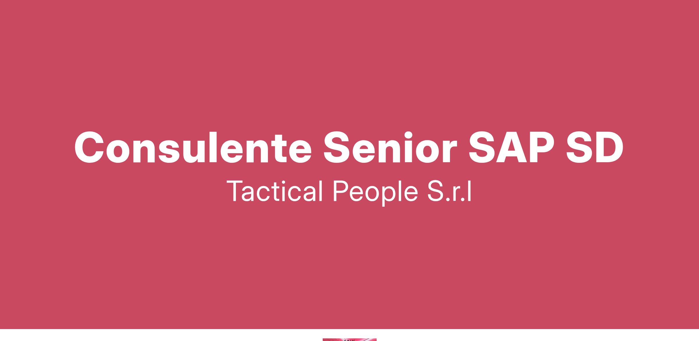 Unisciti a TACTICAL PEOPLE: Innovazione, Persone e Crescita nel Cuore della Digital Transformation Da oltre 20 anni, TACTICAL PEOPLE si posiziona come leader nel mercato ICT, guidando con passione e competenza i nostri clienti di medie e grandi dimensioni attraverso il dinamico percorso della digital transformation. La nostra mission è chiara: non solo abbracciare il cambiamento tecnologico, ma guidarlo, creando soluzioni all'avanguardia che plasmino il futuro digitale. In TACTICAL PEOPLE, crediamo fortemente nel mettere le persone al centro di ogni nostra iniziativa. Le persone sono il cuore pulsante della nostra azienda; il loro benessere, la loro crescita e il loro sviluppo sono la nostra priorità. Ci impegniamo a condividere le strategie aziendali con trasparenza e a fornire formazione e supporto a ogni livello, garantendo che ogni membro del team sia equipaggiato per eccellere e innovare. Stiamo cercando individui che condividano la nostra visione, che siano guidati dalla passione per la tecnologia e che desiderino essere protagonisti nella costruzione di un futuro digitale più luminoso. Se sei pronto a far parte di una squadra che valorizza il talento, incoraggia la crescita personale e professionale e lavora in prima linea nel settore della digital transformation, TACTICAL PEOPLE è il posto giusto per te. Posizione Aperta: Consulente Senior SAP SD Sede: Remoto Descrizione del ruolo: Il candidato ideale deve avere una comprovata esperienza superiore ai 7 anni nell'implementazione e gestione del modulo SAP SD. Cosa offriamo: Inserimento immediato in una Tech Community giovane e dinamica. TACTICAL LEARNING HUB, con corsi di aggiornamento e formazione. Il presente annuncio è rivolto ad entrambi i sessi, ai sensi delle leggi 903/77 e 125/91, e a persone di tutte le età e tutte le nazionalità, ai sensi dei decreti legislativi 215/03 e 216/03. I curricula dovranno pervenire completi di dicitura che autorizza il trattamento dei propri dati: “Si autorizza al trattamento dei dati personali ai sensi del D. Lgs. 196/2003.
